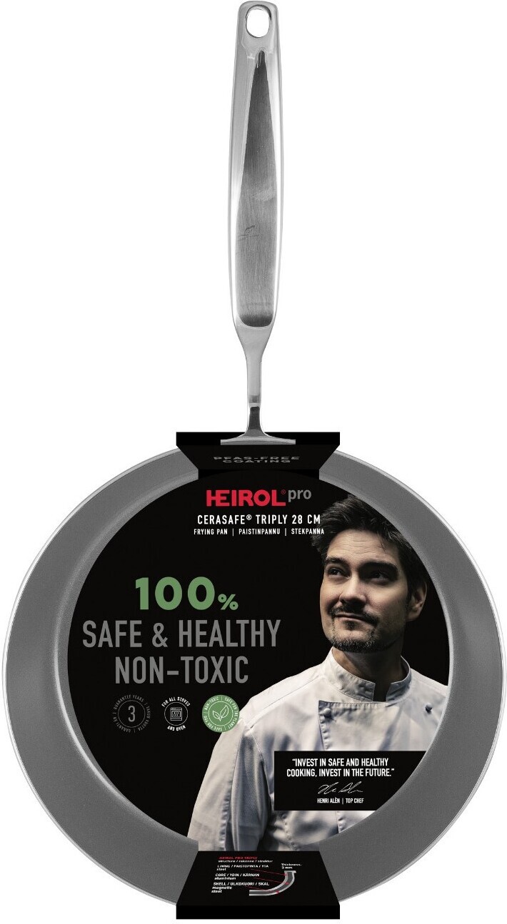Uuendatud Cerasafe® Triply praepann on 100% PFAS-vaba ja plastikuvaba ning garanteerib tervisliku toiduvalmistamise. HEIROL Cerasafe® Triply toodetel on keraamiline kate, mis on alates toote tootmisprotsessidest täiesti vaba inimestele ja loodusele kahjulikest PFAS-kemikaalidest. Toode kestab kaua ja on seetõttu ka professionaalide lemmik.