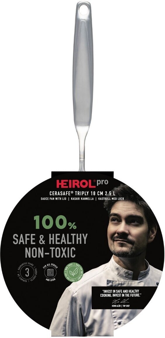 Uuendatud Cerasafe® Triply kastrul on 100% PFAS-vaba ja plastikuvaba ning tagab tervisliku toiduvalmistamise. HEIROL Cerasafe® Triply toodetel on keraamiline kate, mis on alates toote tootmisprotsessidest täiesti vaba inimestele ja loodusele kahjulikest PFAS-kemikaalidest.
