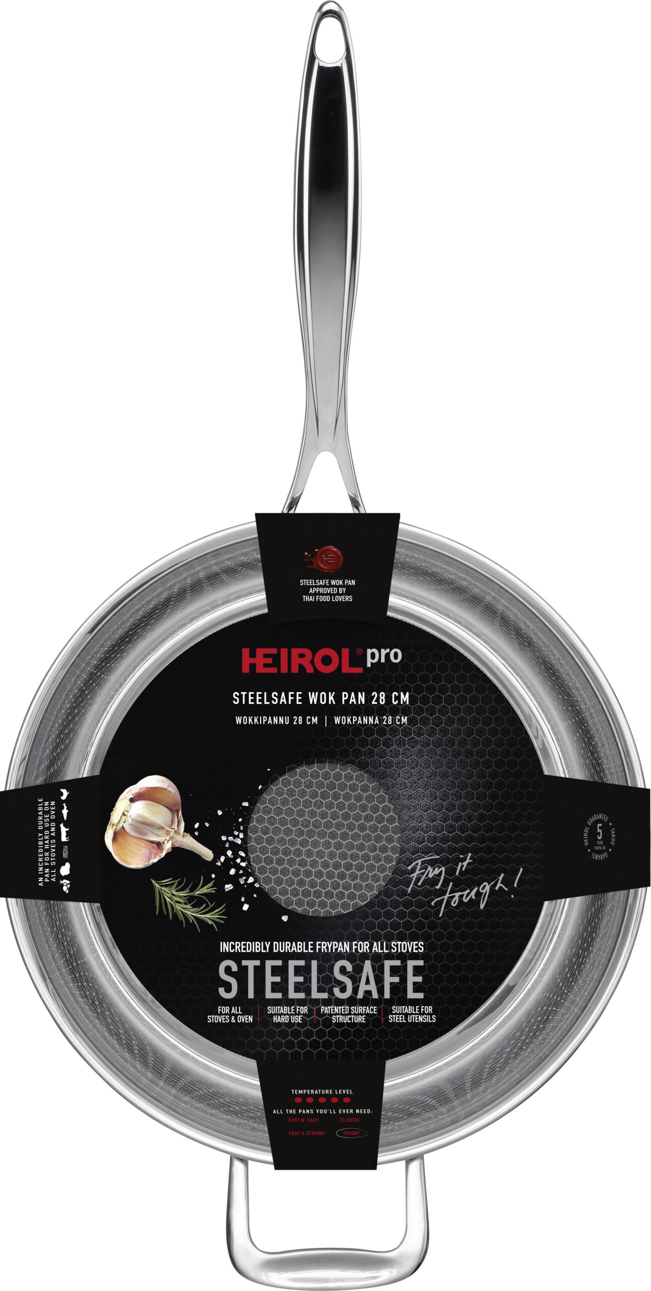 Heirol Pro Steelsafe wokkpann, roostevaba teras + mittenakkuv kate, 28 cm
