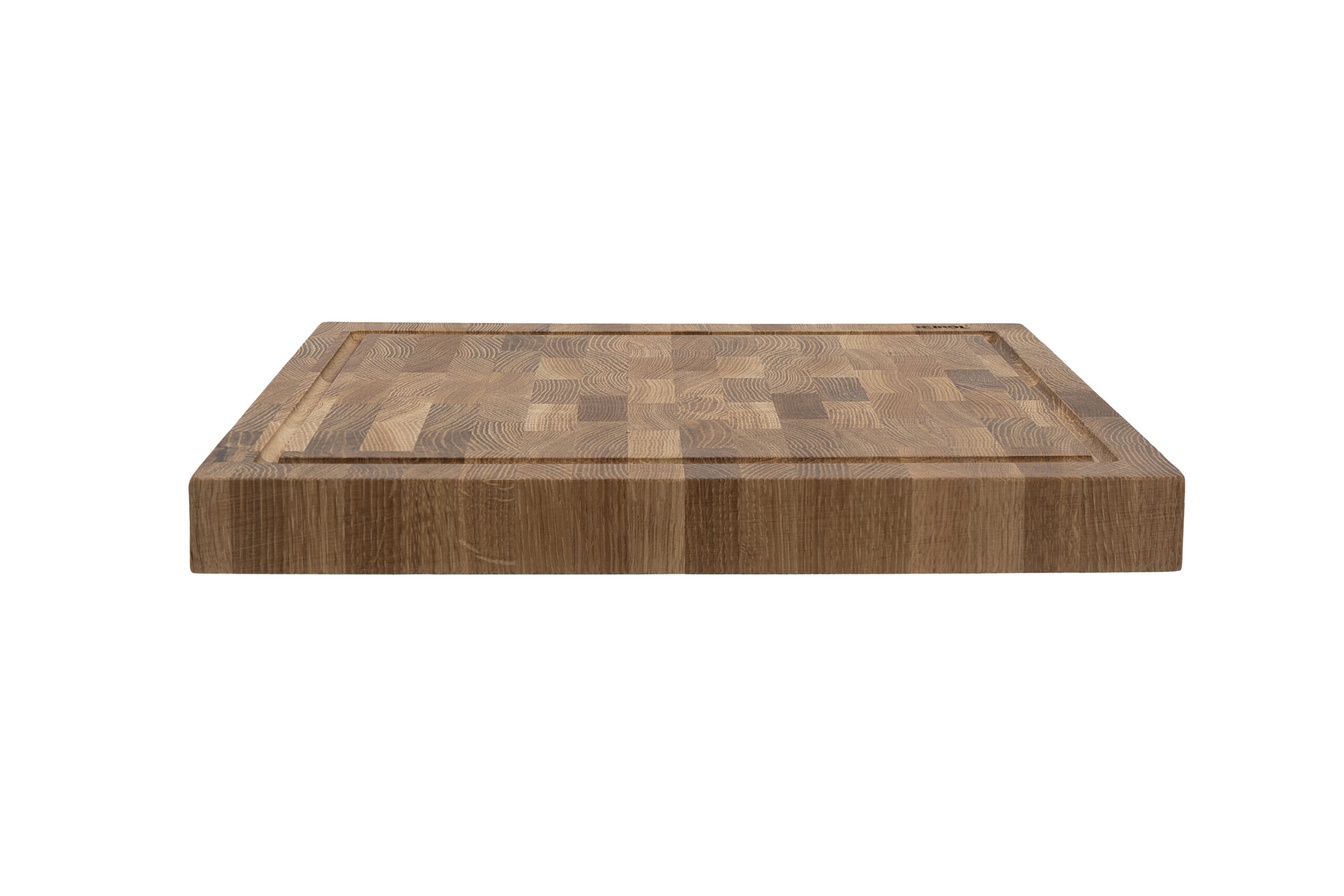 Ilus ja kvaliteetne tammepuidust lõikelaud on vastupidav ja nugade vastu õrn. Soone kogub vedelikke ja puru, hoides tööpinna korras.