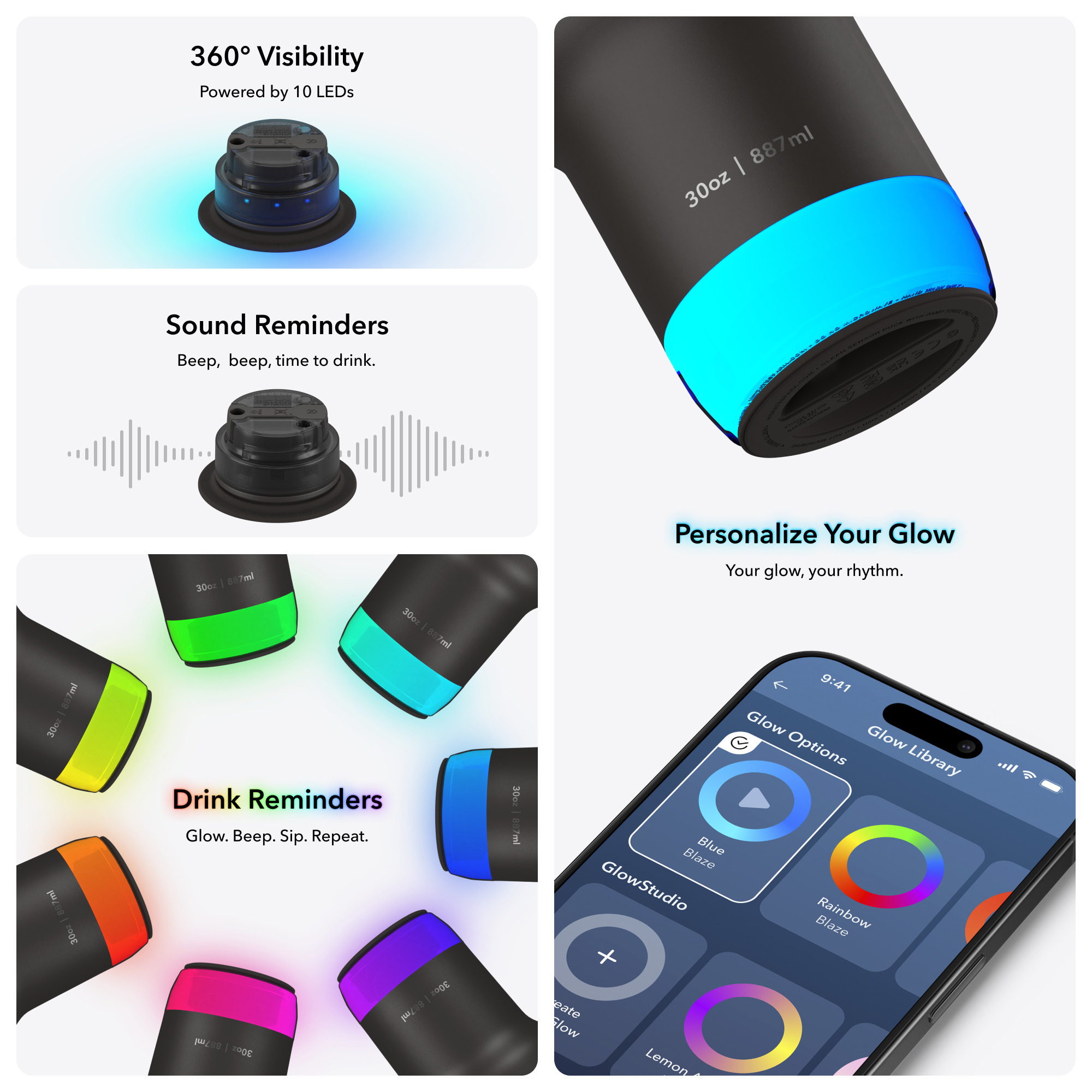 Älyjuomapullo muistuttaa juomisesta 360 asteen valaistuksella, äänimerkeillä ja sovellusilmoituksilla. Se seuraa juomista reaaliajassa, pitää juomat kylminä 24 tuntia, kuumina 4 h ja kestää jopa 21 päivää yhdellä latauksella.
