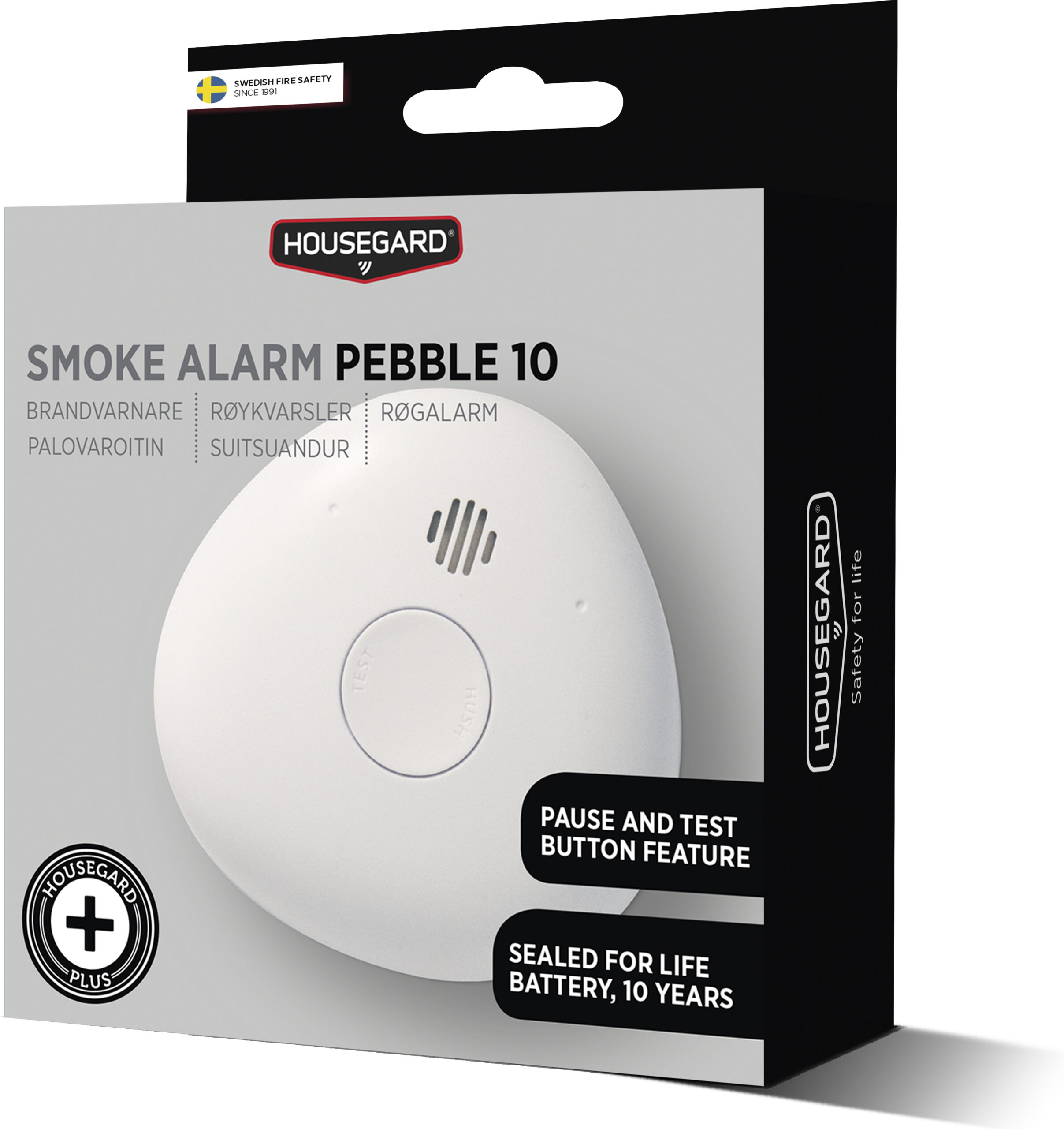 Housegard Pebble 10 SA701 on Lars Wettre disainitud optiline suitsuandur. Pebble’il on pehme ja esteetiliselt meeldiv välimus, mistõttu see sobib igasse koju. Pebble 10 on loodud kasutajasõbralikuks. Sellel on lihtsad pausi- ja testimisfunktsioonid ning seda on lihtne puhastada. Suitsuanduri sisseehitatud liitiumaku kestab kogu 10-aastase tööea – see on täiendav ohutustegur, mis tagab, et te ei pea muretsema aku vahetamise pärast. Pebble 10-ga on kaasas 3M-i kinnitusteip, nii et andurit saab hõlpsalt paigaldada ilma kinnituskruvide puurimiseta.