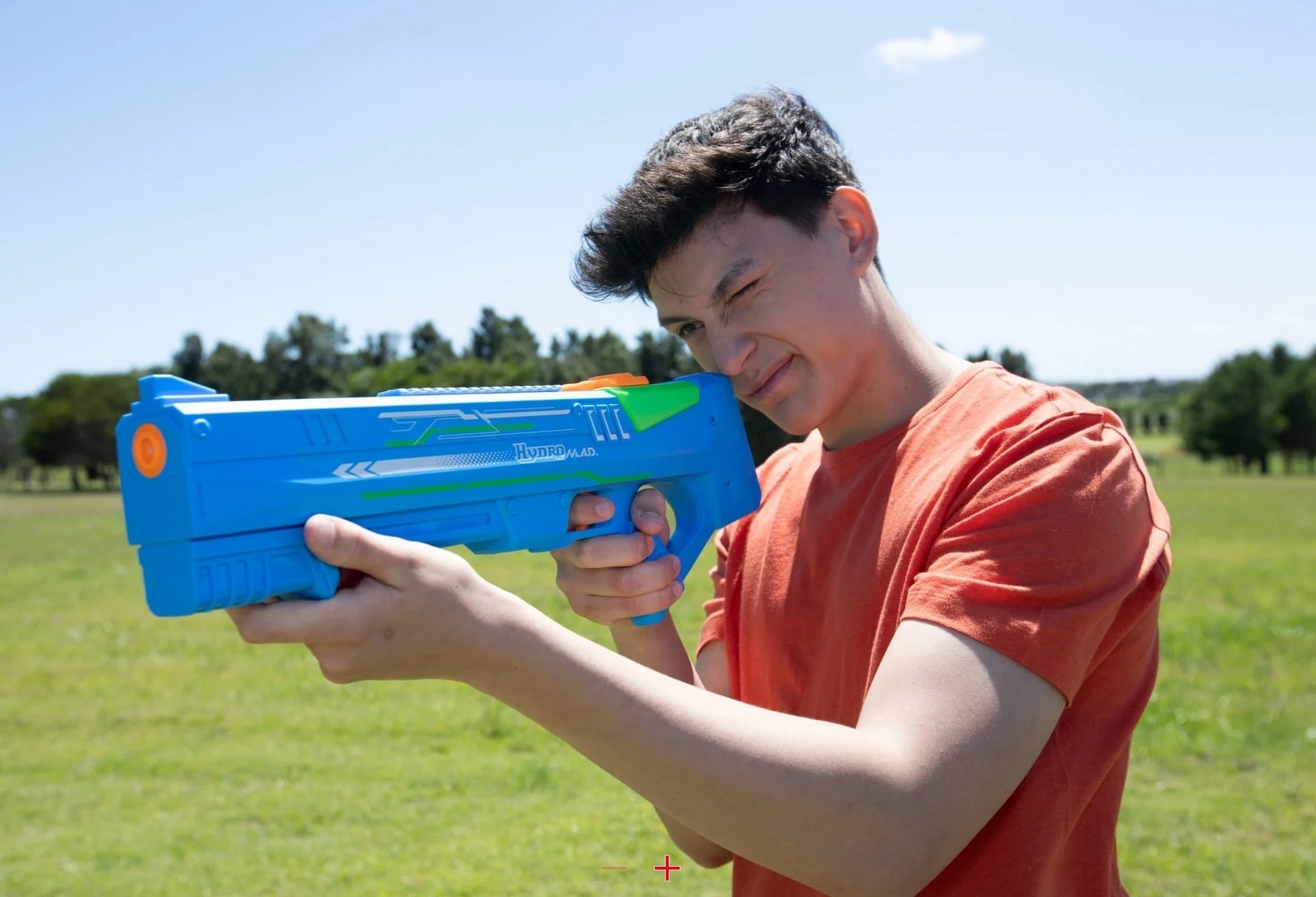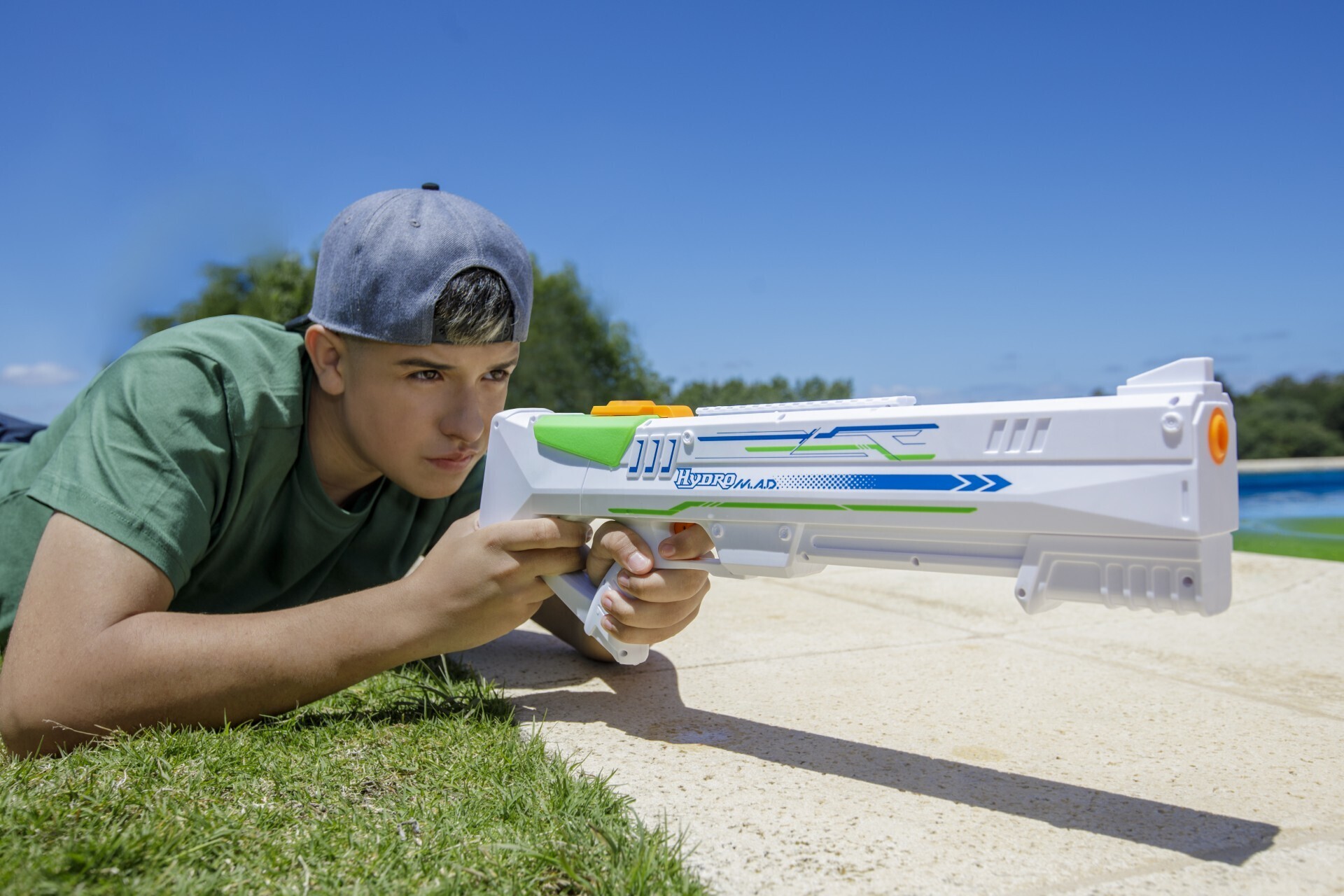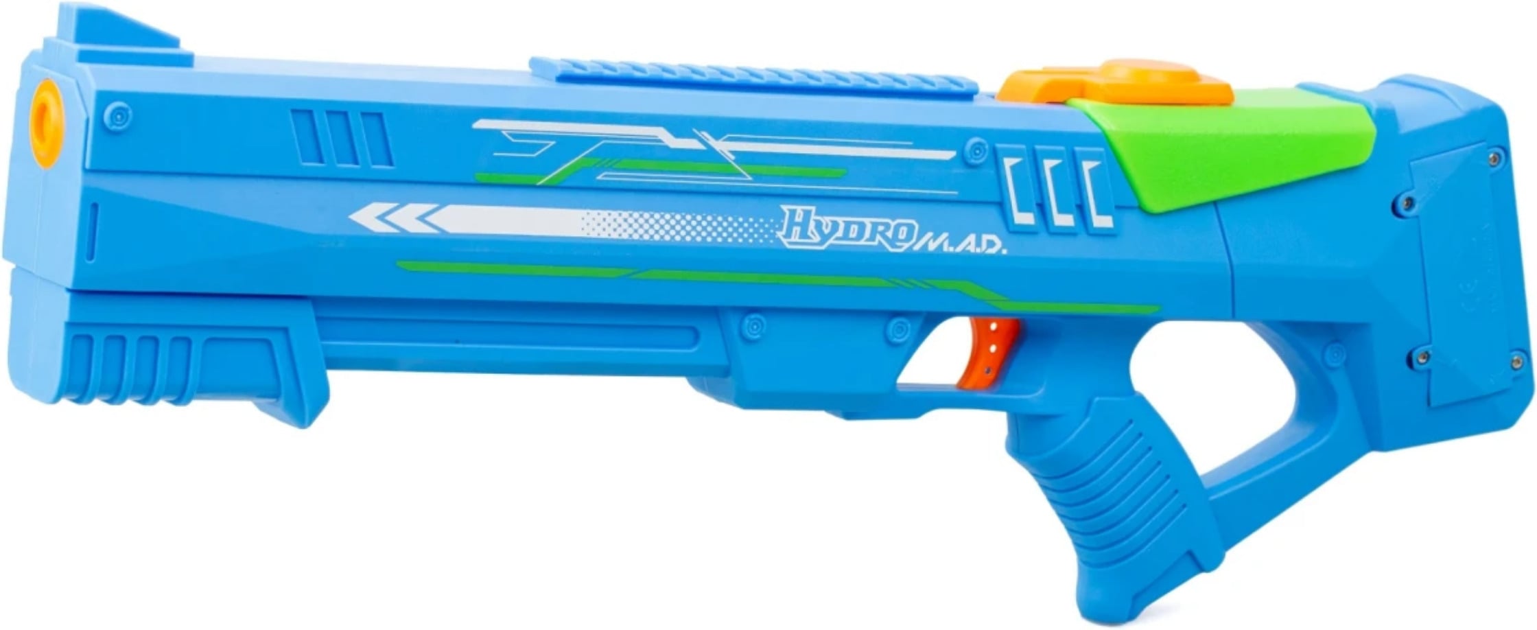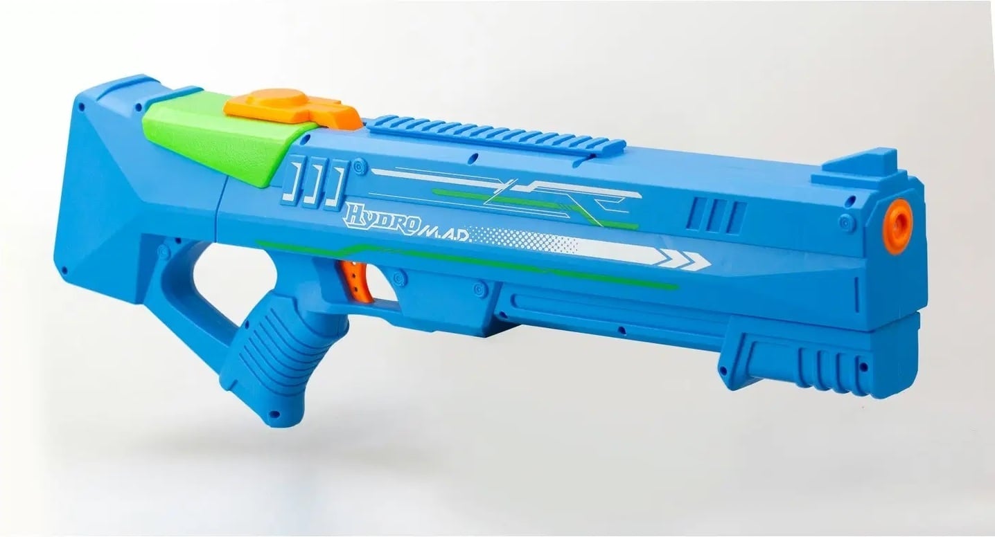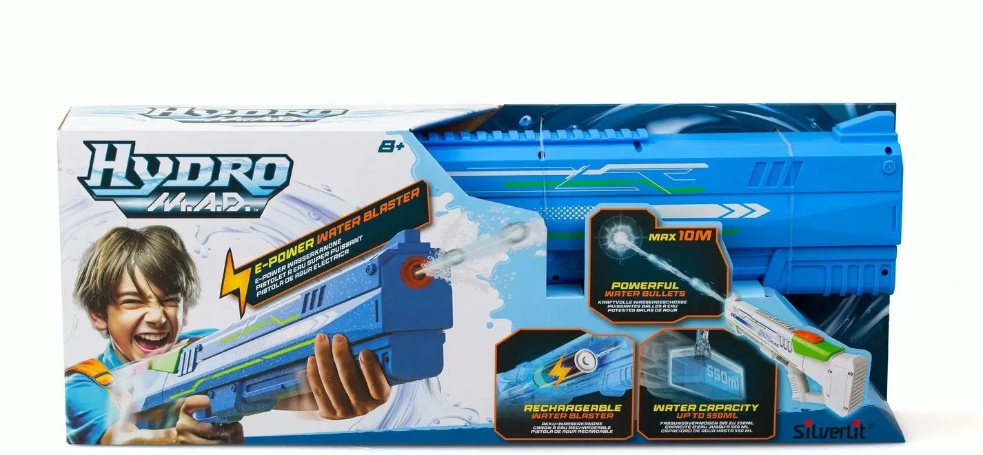 Elektrooniline veepüstol Hydro M.A.D splastz, millega saad lasta isegi pikkade vahemaade taha. Mitte väike veejoa, vaid päris veekuulid! Laskekaugus võib olla kuni 8-10 meetrit. Kaasasolevate patareidega saad umbes 20 minutit mänguaega.
