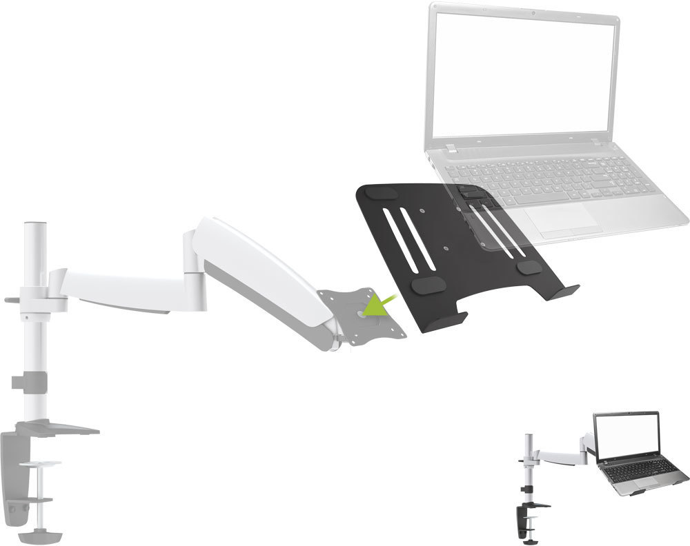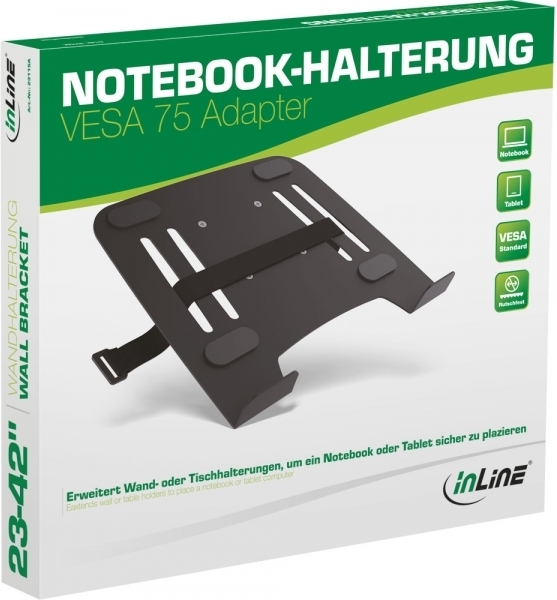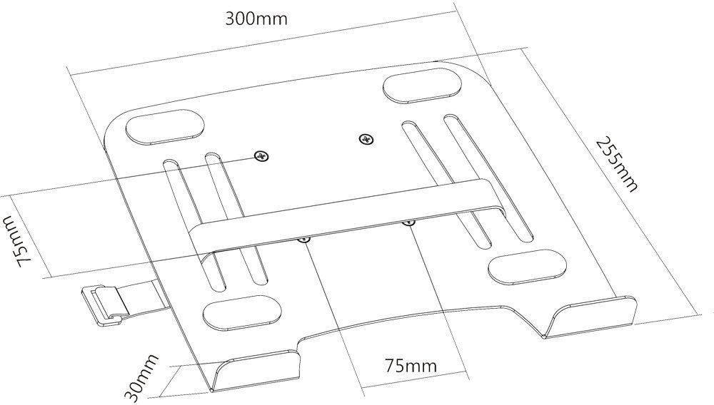 Tugev metallalus VESA kronsteinidega. Sobib VESA 75x75mm suurusele. Sülearvutialus kinnitatakse VESA kinnitusega monitori või seinakinnitusele.