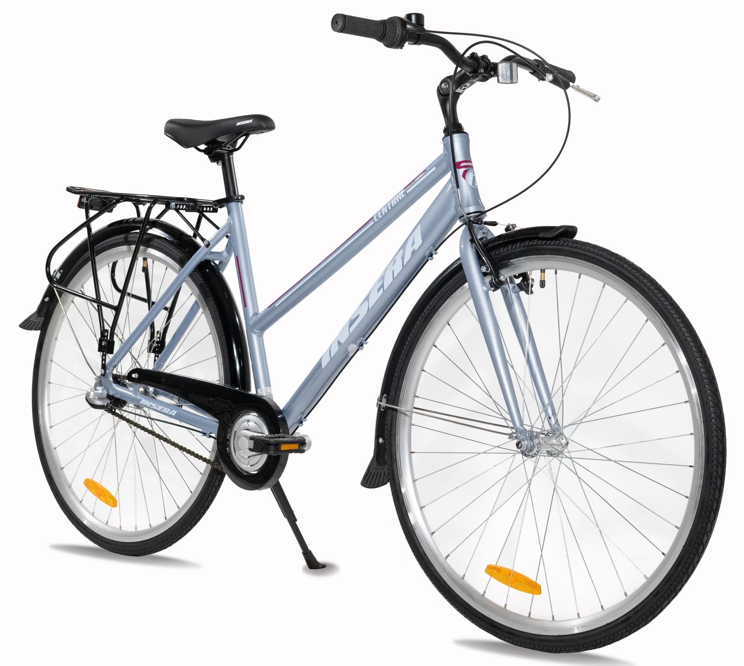 Insera Central 28″ on Suomessa suunniteltu alumiinirunkoinen retki-/ peruspyörä työmatkoille ja vapaa-aikaan. Tukeva alumiinirunko tuo keveyttä ja vakautta pyöräilyyn ja matka käy vaivattomasti. 50 cm runkokoko sopii käyttäjille, joiden pituus on 158 – 178 cm. Monipuolinen mahdollisuus säätää ohjainkannattimen kulmaa ja korkeutta takaa sinulle sopivan ajoasennon.