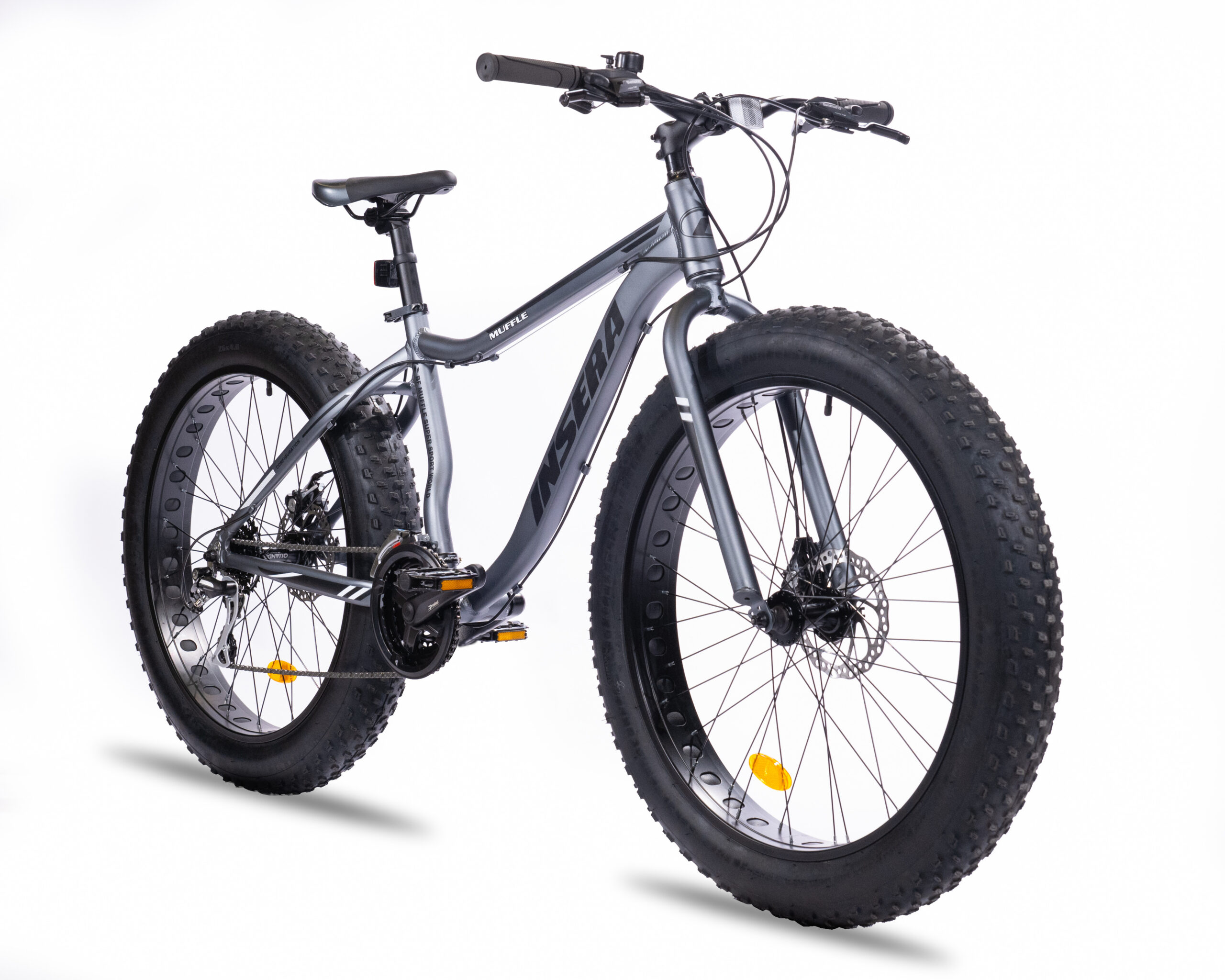 Insera Muffle 26″ on Suomessa suunniteltu alumiinirunkoinen fatbike. Komponenttien valinnassa on huomioitu Suomen vaativat keliolosuhteet. Muffle 26″ on tarkoitettu fatbike harrastusta aloittelevalle kuskille sekä luonnosta nauttivalle satunnaiselle pyöräilijälle.