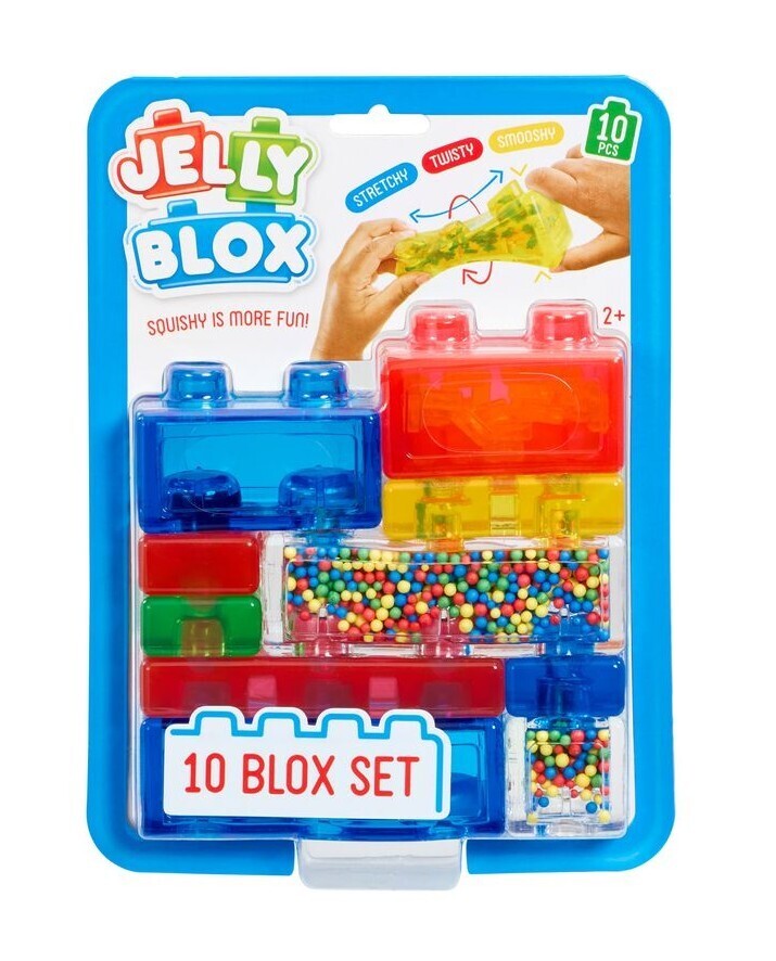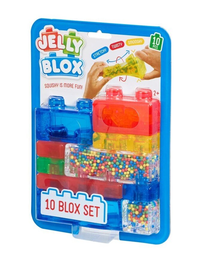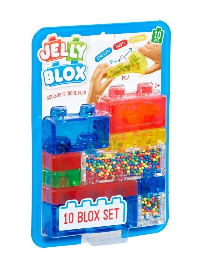 Pehmed ja venivad Jelly Bloxi ehitusklotsid loominguliseks ja sensoorseks ehitamiseks ja mängimiseks! Ehitage imeliselt kombatavaid struktuure. Pakend sisaldab 10 klotsi, sh eriklotsid.