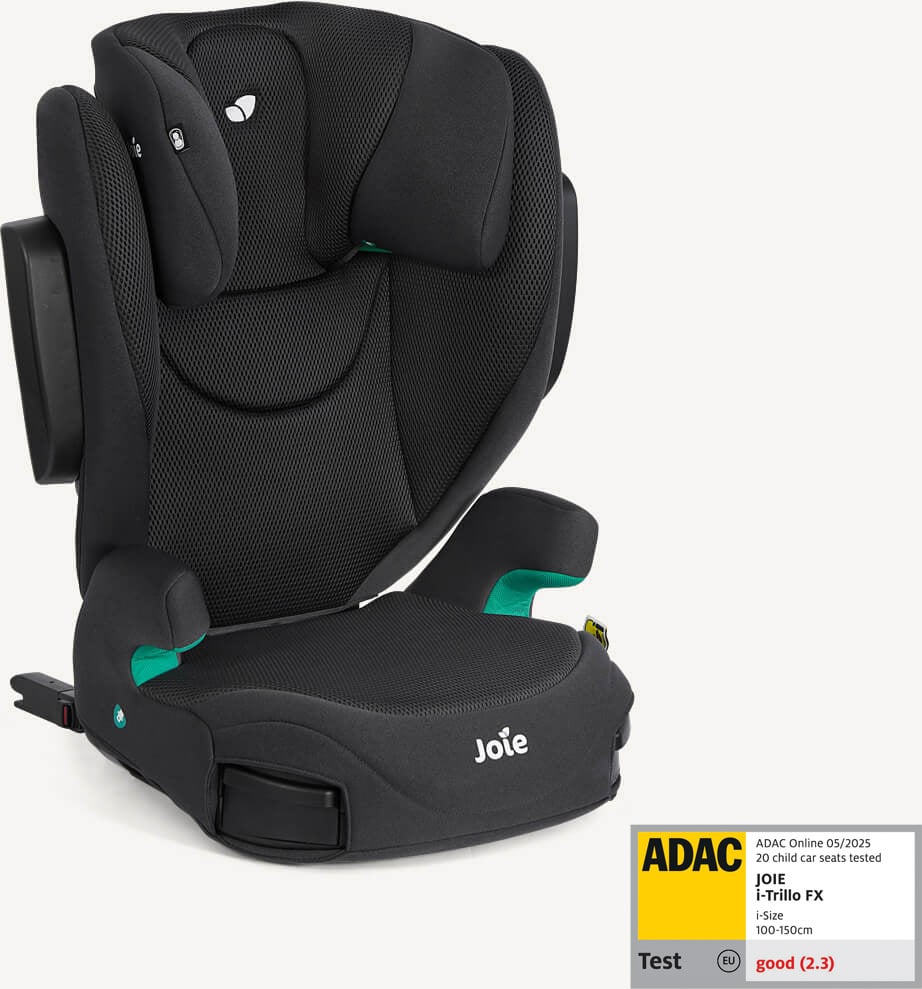 Joie i-Trillo FX -turvavyöistuin täyttää kaikki uuden ECE R129/03 (i-Size) -standardi mukaiset turvallisuustestit ja on lisäksi ADAC-testattu (4 tähteä, kokonaispisteet 2,3). Istuin soveltuu lapselle 100–150 cm / noin 4–12 v, ja asennus tapahtuu kasvot menosuuntaan. Istuimessa käytetään lämpöön reagoivaa Memory Foam -istuinpehmusteita, jotka mukautuvat täydellisesti lapselle sopivaksi. Myös pääntuen korkeutta voidaan nostaa yhdellä kädellä jopa 10 pykälän verran. Istuimen kulmista löytyy sisään käännettävät mukitelineet matkajuomille. Istuimen integroitu Guard Surround Safety™ -sivutörmäyssuojaus vähentää merkittävästi sivusta kohdistuvaa törmäysvoimaa.