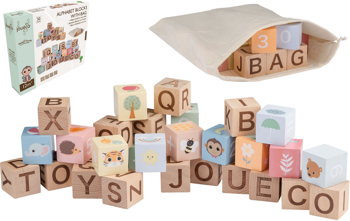Wildies Family tähestiku ja numbriklotsid. Kaasas riidest hoiukott. Valmistatud kvaliteetsest, vastutustundlikult hangitud puidust. Soovitatav vanus alates 1. eluaastast.