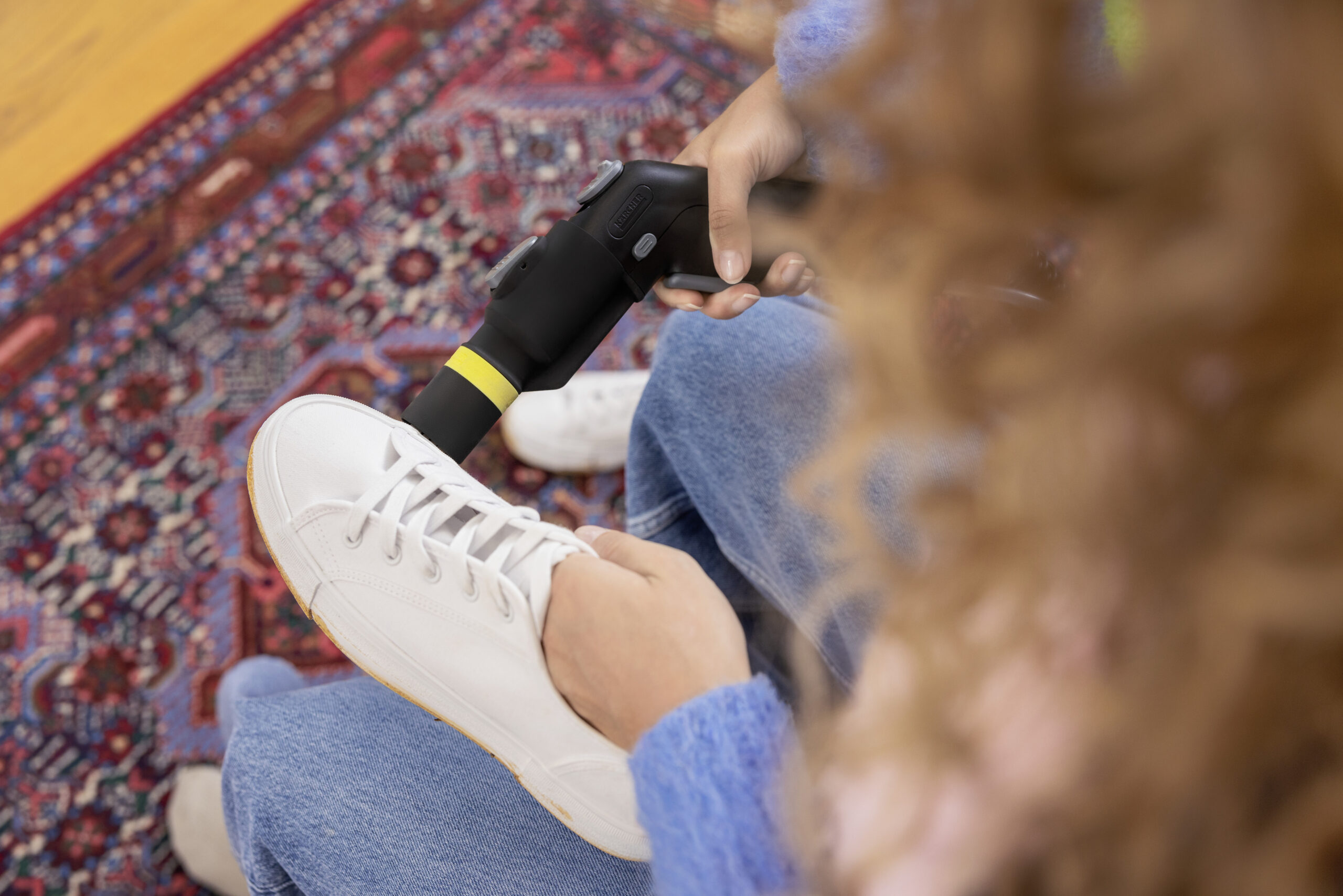 Kiire ja pritsmevaba puhastus riidest jalanõudele. Ühenda seade tekstiilipuhastiga ja asu tööle – peagi on teie jalanõud nagu uued ja minimaalse jääkniiskusega.