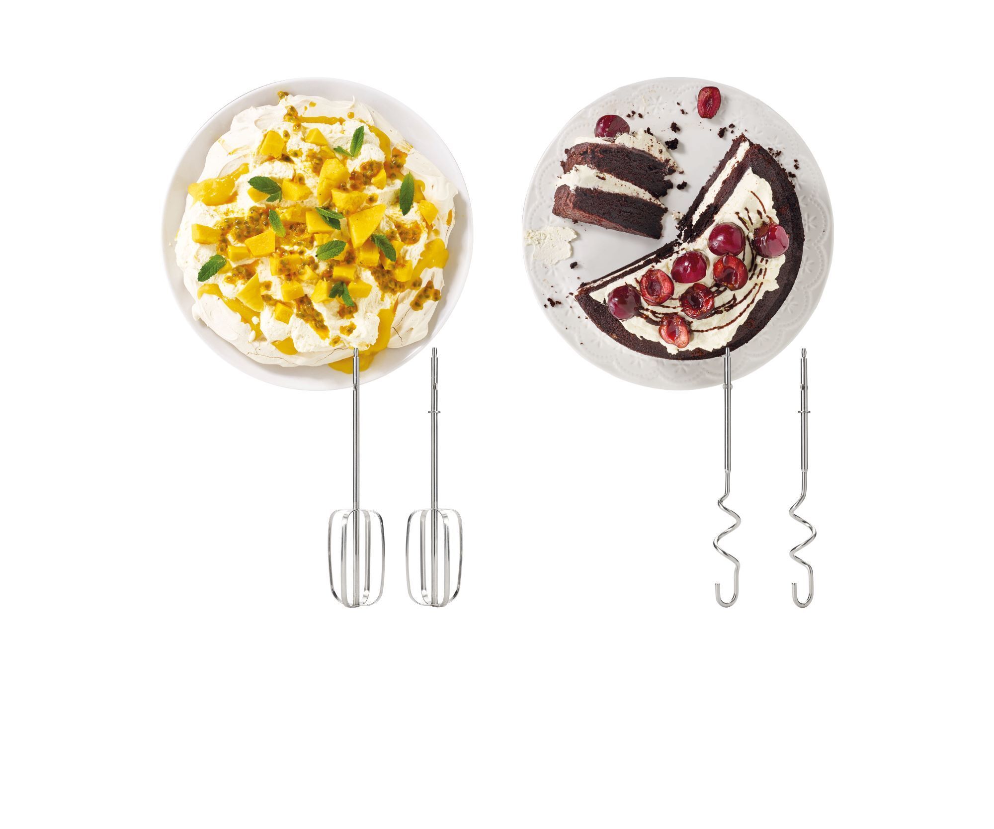 Ergonominen SureGrip-pinnoitettu kahva tuntuu miellyttävältä ja pysyy otteessa. Ainutlaatuinen SureEject-teknologia tekee vispilöiden irrottamisesta ja kiinnittämisestä helppoa. Leveät lankavispilät ovat leipureiden mieleen ja kun leivonta on valmis, teräksiset vatkaimet sekä taikinakoukut voi huoletta pestä astianpesukoneessa.