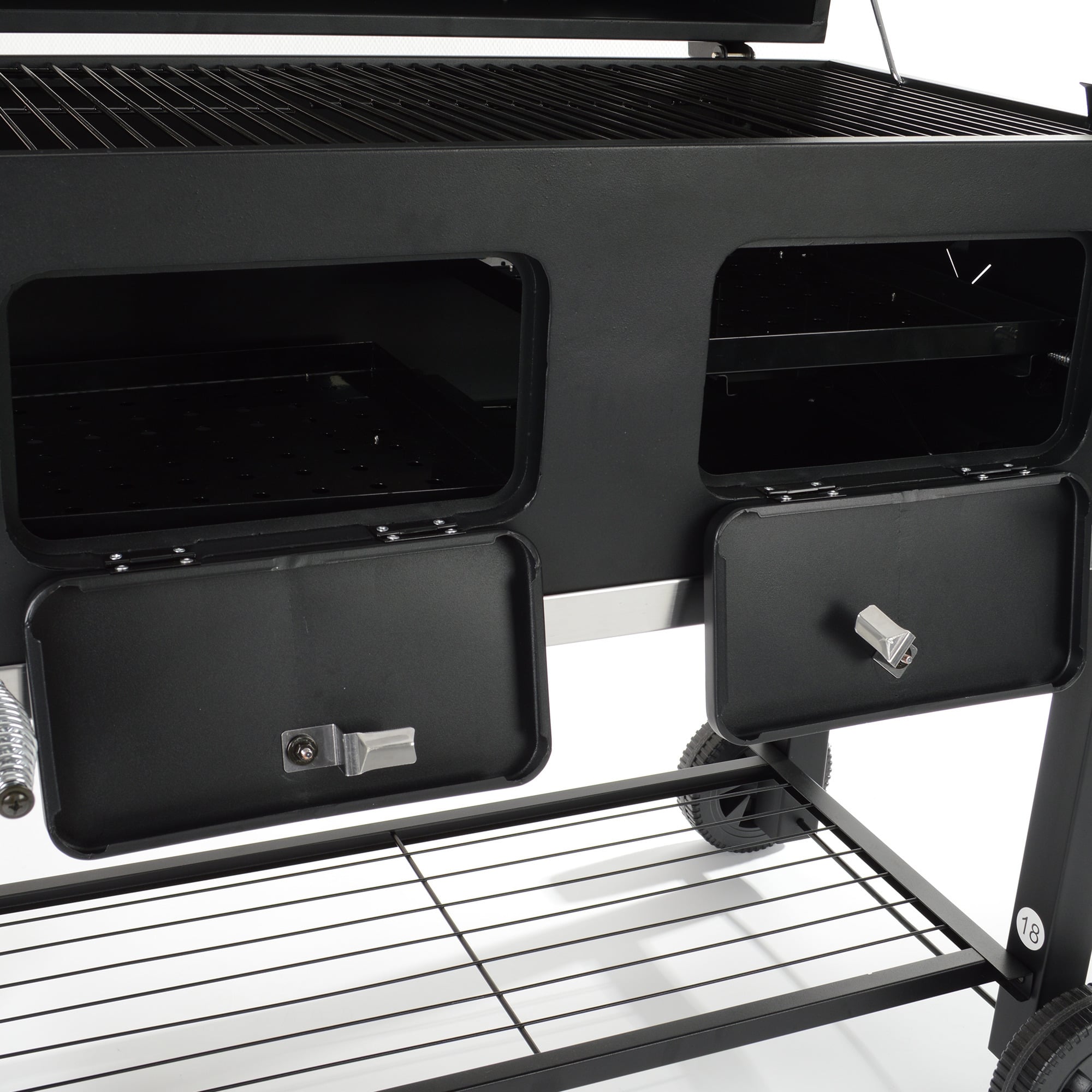 Kannen lämpömittari auttaa seuraamaan grillin lämpötilaa tarkasti, ja rungossa olevat ilmaventtiilit mahdollistavat vedon säädön. Näin lämpö pysyy tasaisena ja grillaaminen onnistuu halutulla tavalla.