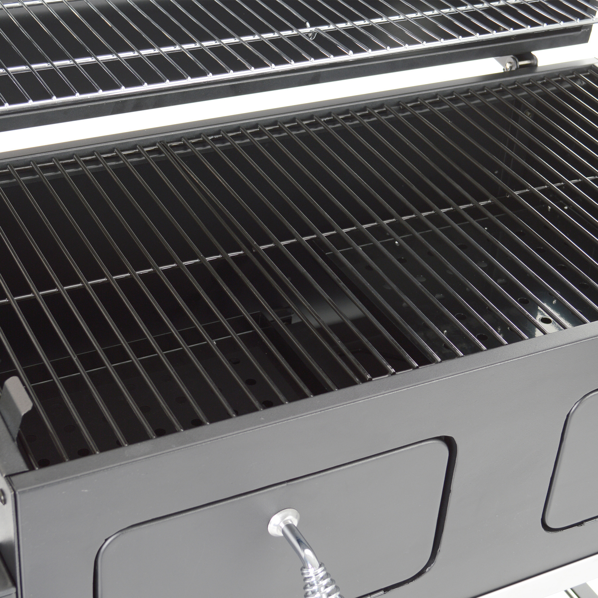 Landmann Tennessee XXL hiiligrilli vaunulla tarjoaa tilavan ja monipuolisen grillauskokemuksen. Sen suuri 79,5 x 42 cm grillausala antaa runsaasti tilaa valmistaa ruokaa useammallekin, ja valurautaiset grillausritilät jakavat lämmön tasaisesti. Grilli on varustettu lämpöhyllyllä, joka mahdollistaa ruoan pitämisen lämpimänä ilman suoraa lämpöä.