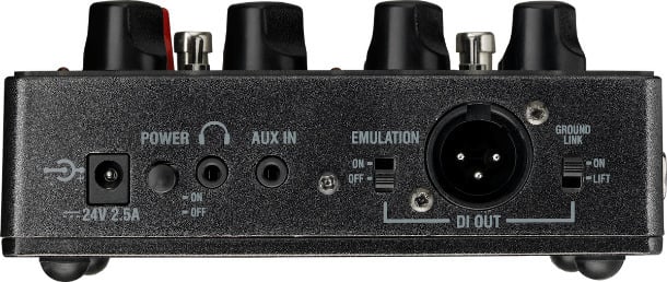 - Tasakaalustatud, kapisimudeldatud DI-väljund (XLR)