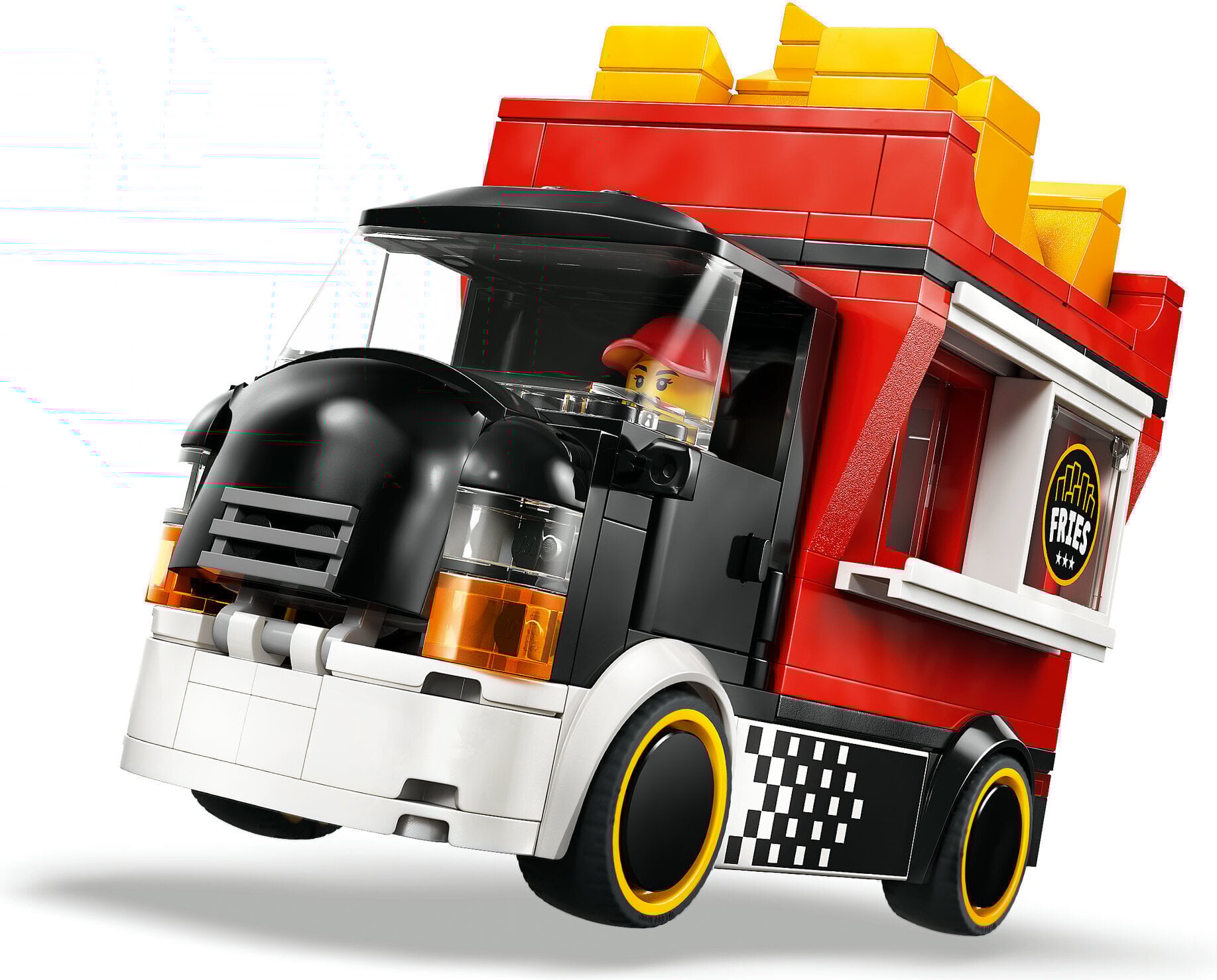 LEGO® City friikartuliauto (60488) ehitusmänguasi, mis sobib alates 5. eluaastast, inspireerib kiirtoidumängu. Värvikal toiduautol on eemaldatav kiosk, mis on hiiglasliku friikartulipaki kujuline. Eemaldatav katus paljastab toiduvalmistamise ala fritüüri, maitseainete ja lükandaknaga teenindusuksega.