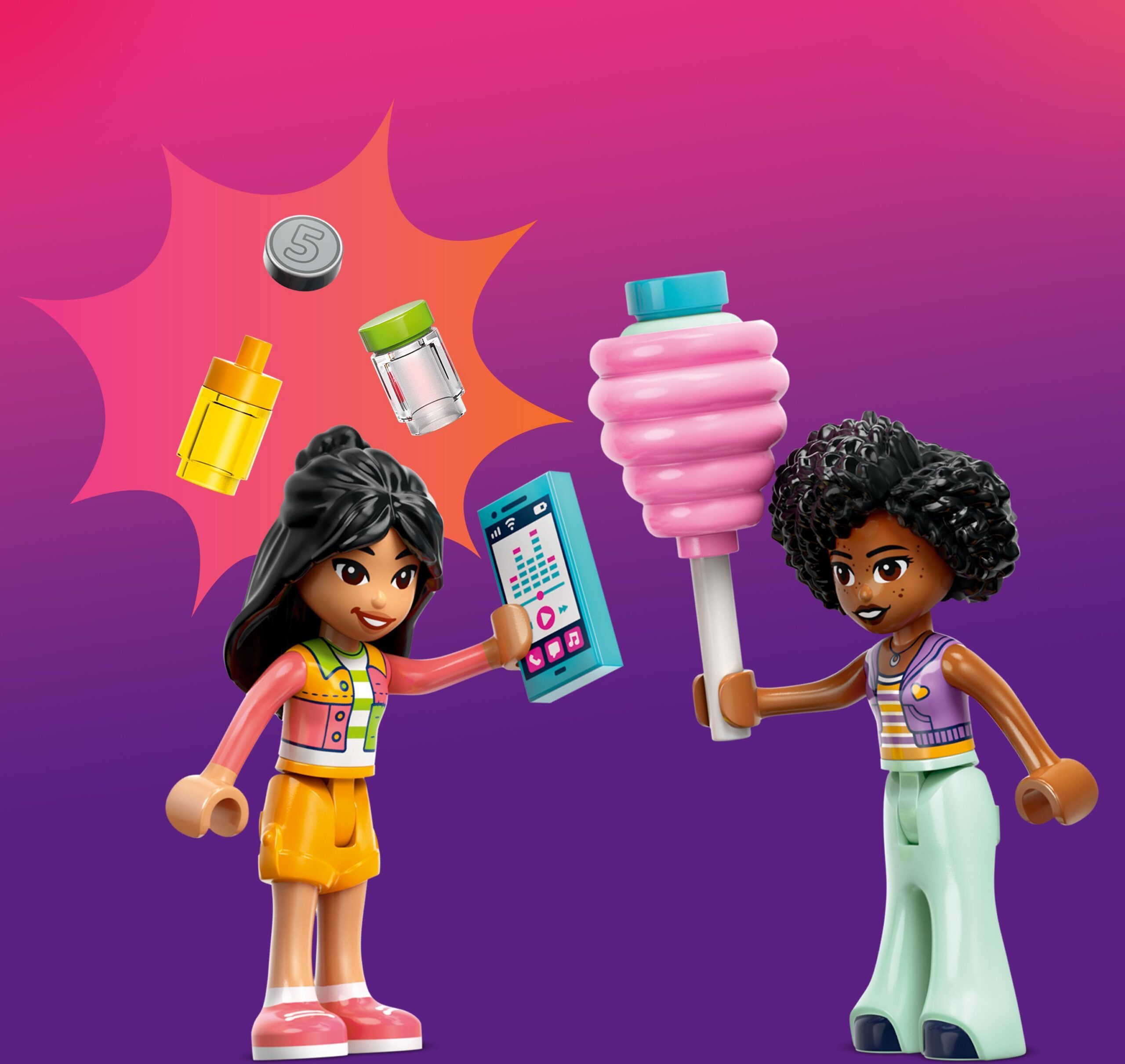 - Sisaldab 2 LEGO Friendsi mininukufiguuri – Komplekt sisaldab 2 mininukufiguuri ja suhkruvati maskoti ehitatavat figuuri.