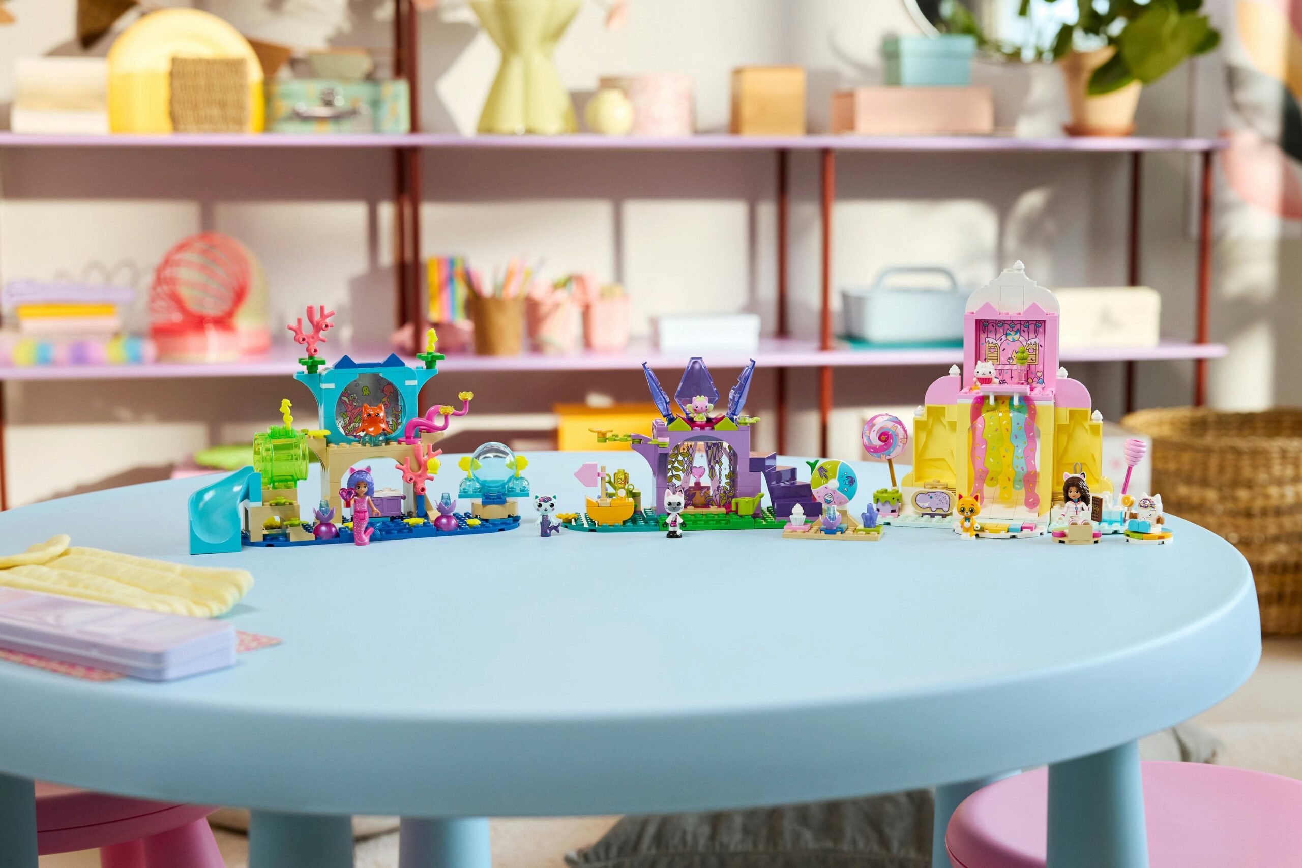 Sukeldu loomingulisse ehitamisse ja mängi Gabby, Pandi Pörrö ja sõpradega LEGO® Gabby nukumaja Karamellimäe ja Kiisuaia komplektiga.