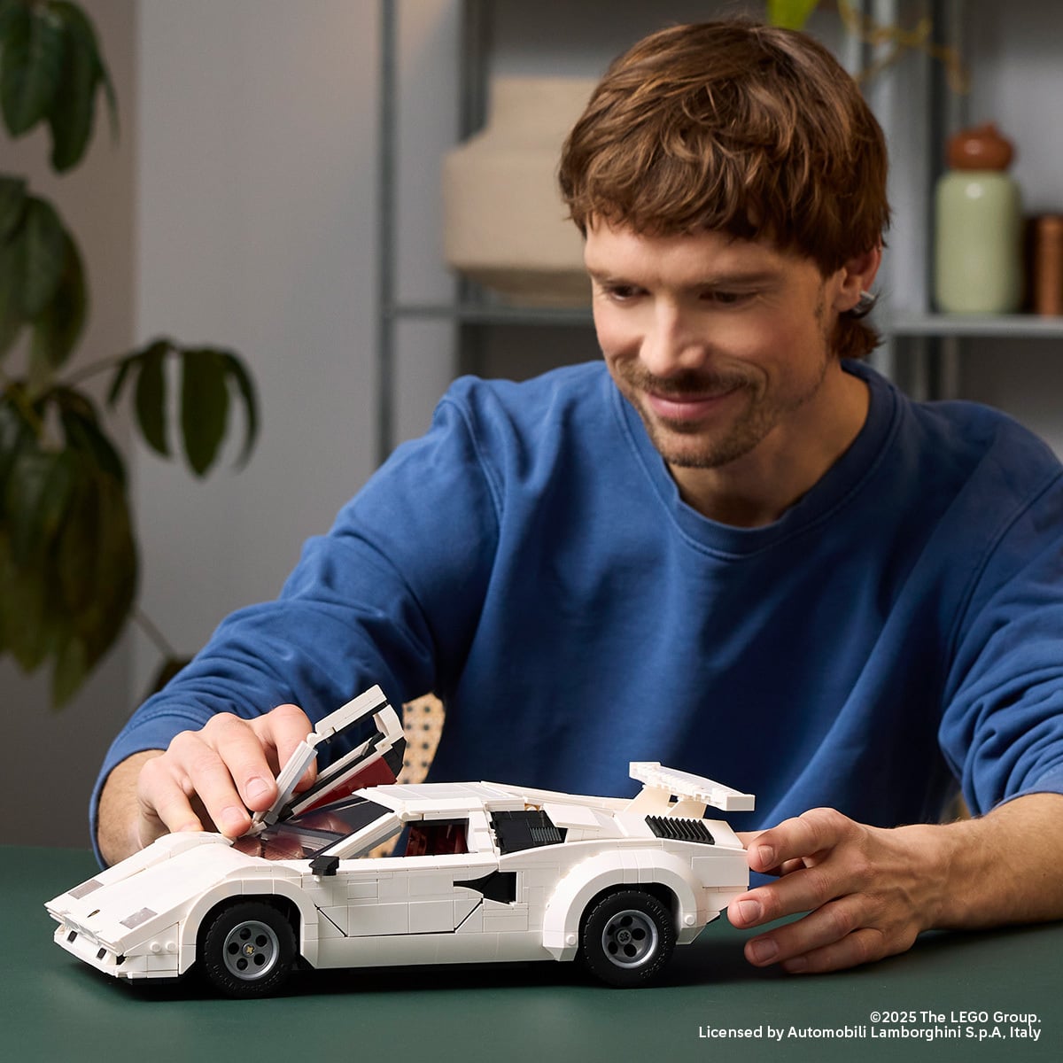 - Lamborghini Countach 5000 Quattrovalvole mudel – LEGO® Icons automudeli ehitusprojekt on loodud ikooniliste sõidukite täiskasvanud fännidele.