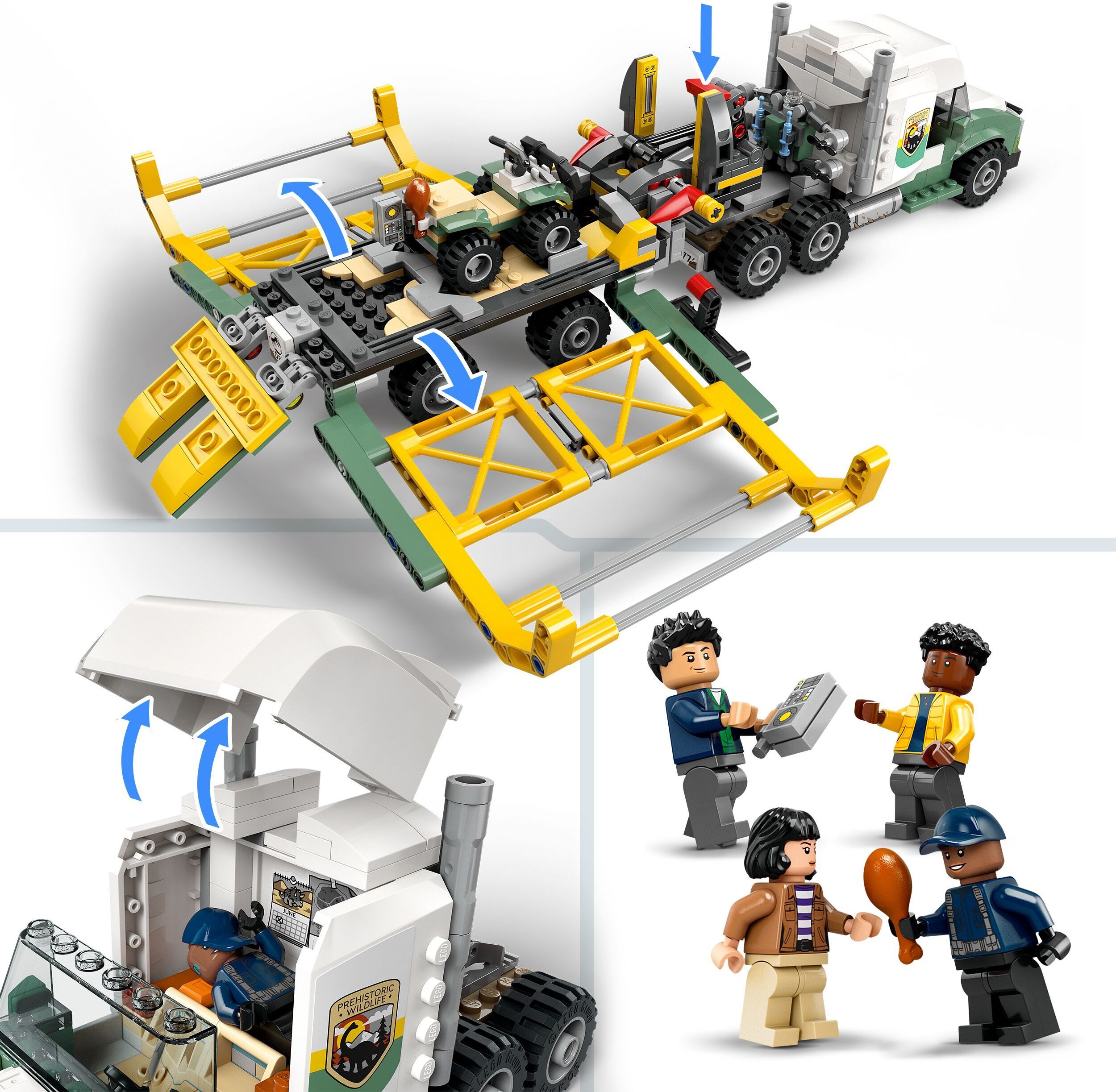 Seiklusmängukomplekt – Sõidukitest lugusid armastavad lapsed armastavad seda Jurassic Worldi seiklusmängukomplekti, mis sisaldab veoauto poolhaagist, LEGO® dinosauruste transpordipuuri, langetatavat kaldteed ja külgi, ATV-d ja palju muud.