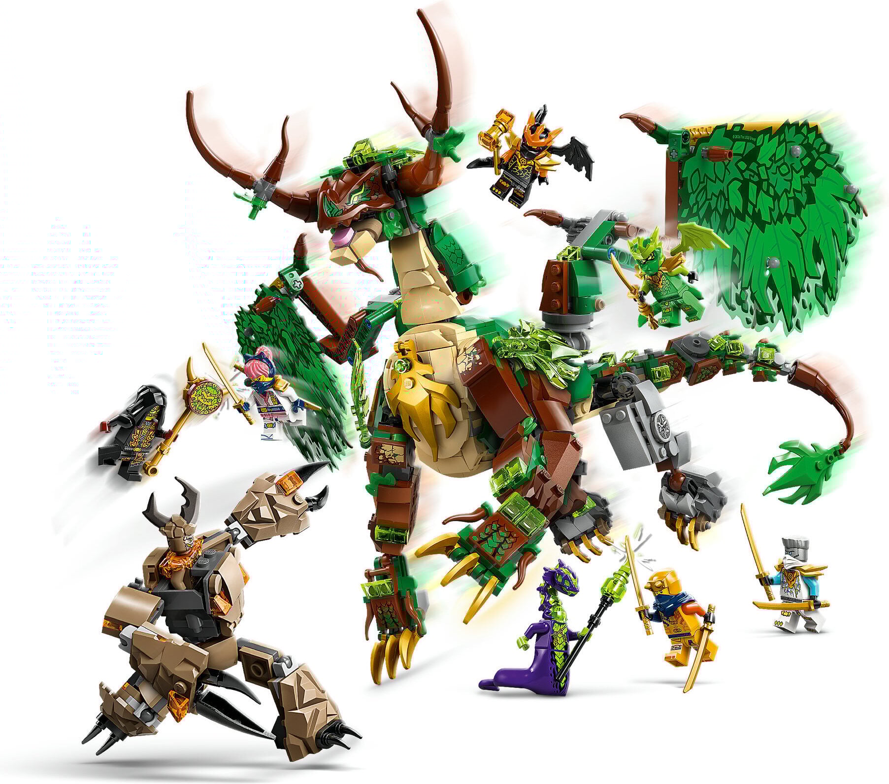Leikkisetti sisältää pienemmän pyöritettävän rakennelman, jossa on puu ja kasvi ja jonka sisälle on kätketty kultainen miekka. Mukana on myös liikuteltava minirobotti, jossa on ohjaamo minihahmoa varten. Setissä on 8 minihahmoa huimiin taisteluleikkeihin: ninjahahmot Zane, Sora, Arin, Lohikäärme-Lloyd ja Lohikäärme-Cole sekä happohirviön, maahirviön ja lojalistien johtajan muodostama pahiskolmikko.