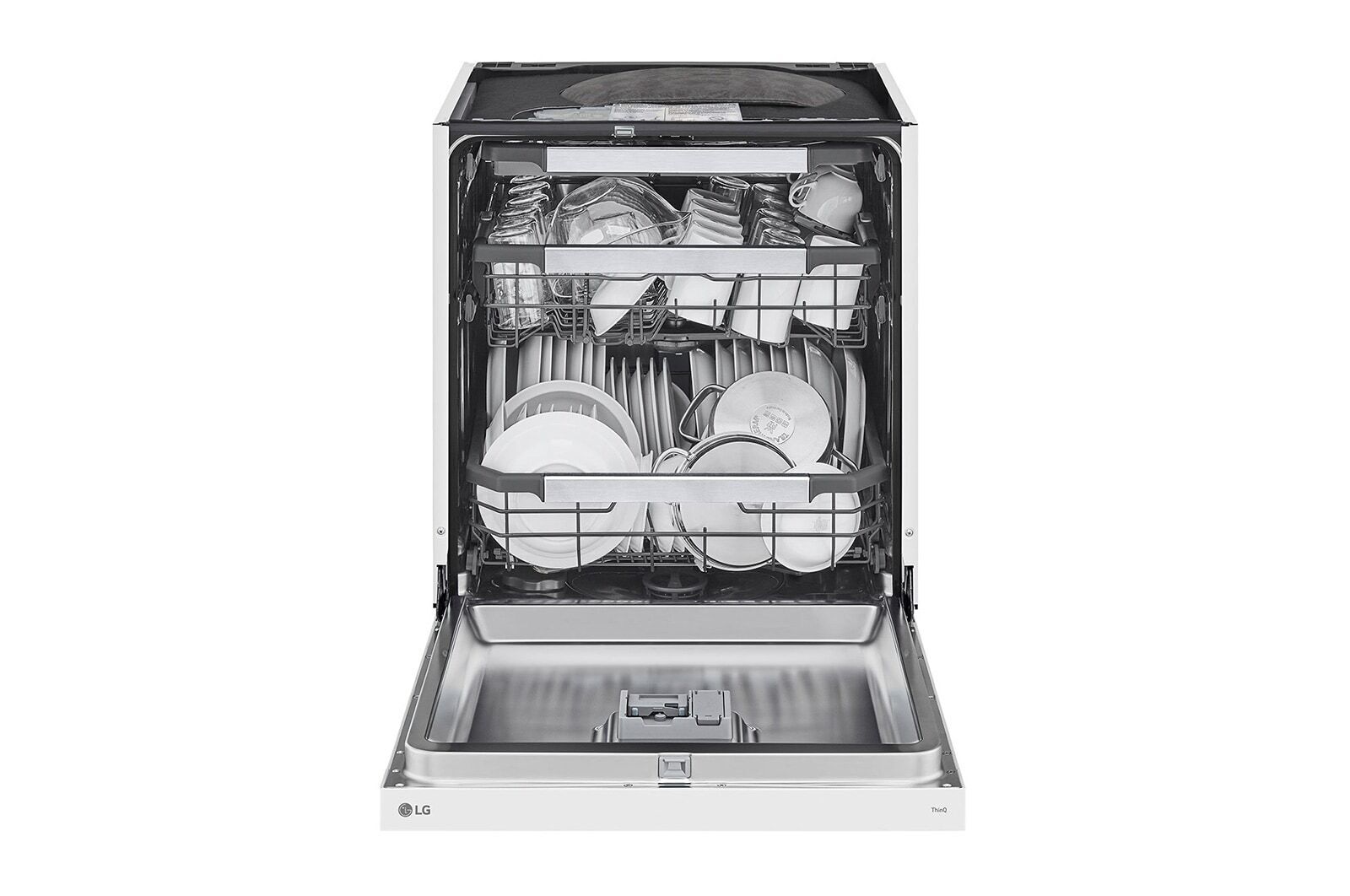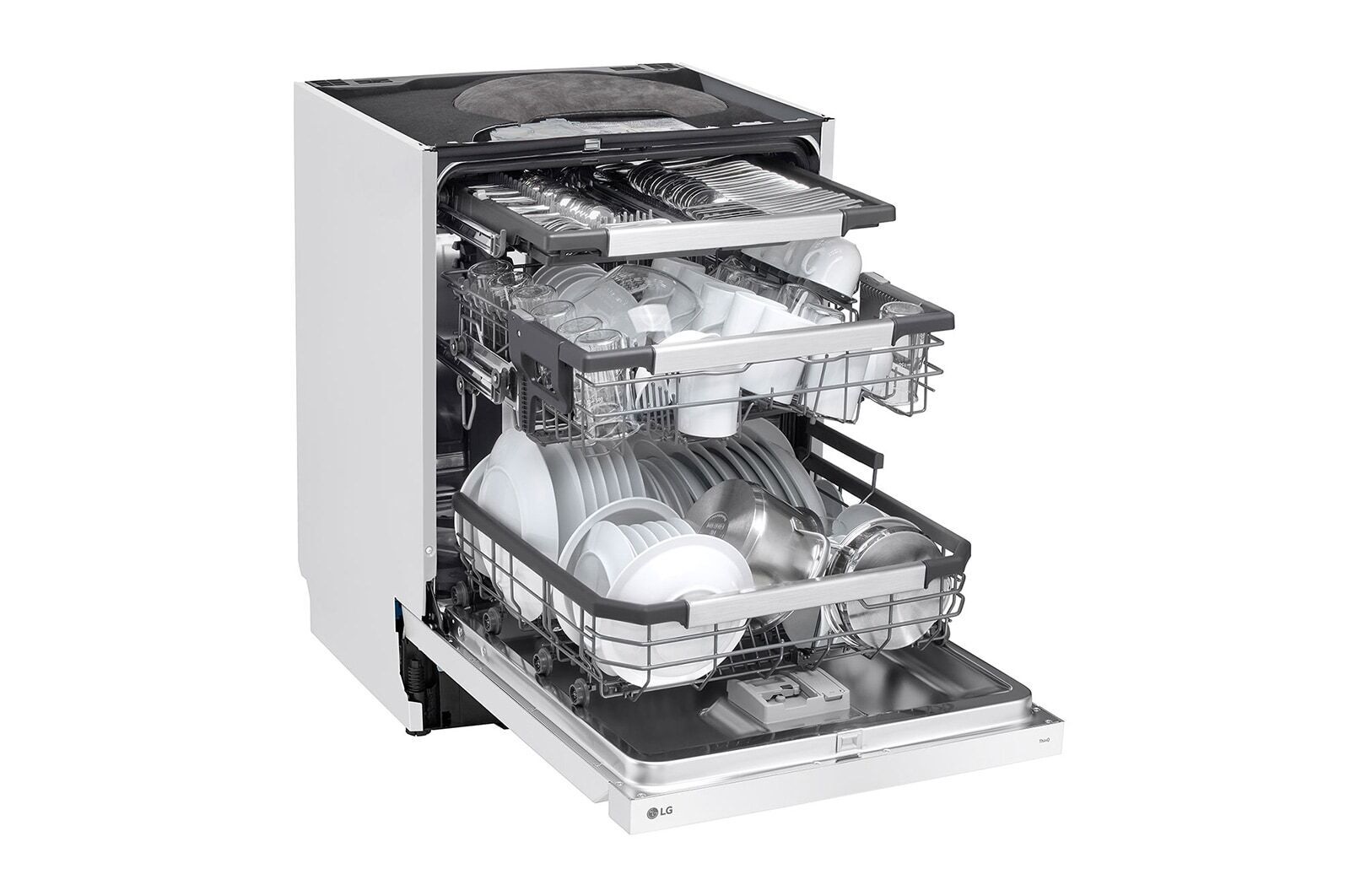 LG ThinQ™ rakenduse abil saate jälgida pesuprogrammi edenemist ja vajadusel uusi programme alla laadida. Funktsioon Auto Open Dry avab ukse automaatselt pärast pesu lõppu, võimaldades nõudel paremini kuivada ilma lisaenergiat kulutamata. Nõudepesumasinal on ka määrdumisandur ja veepehmendaja, mis parandavad pesutulemust ja kaitsevad masinat.