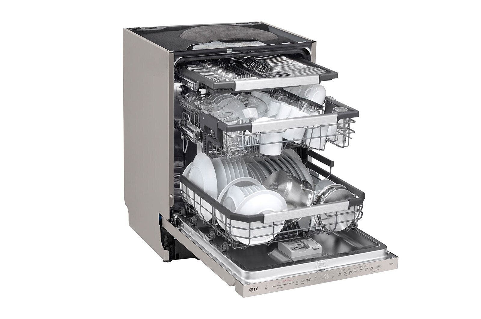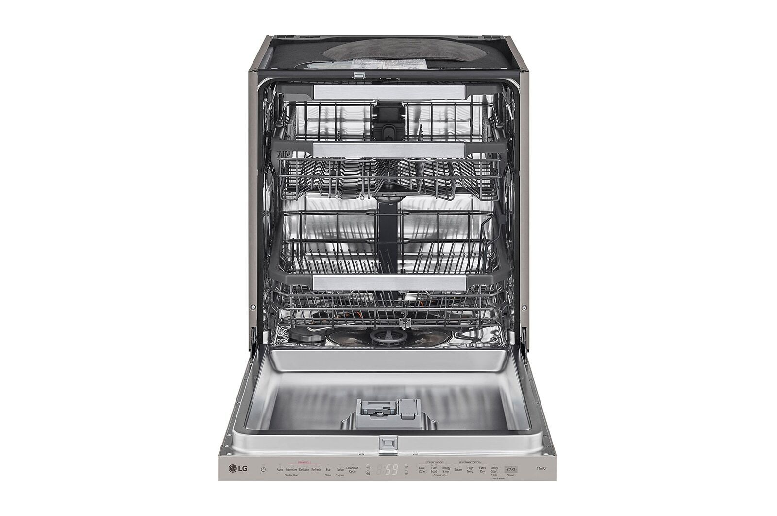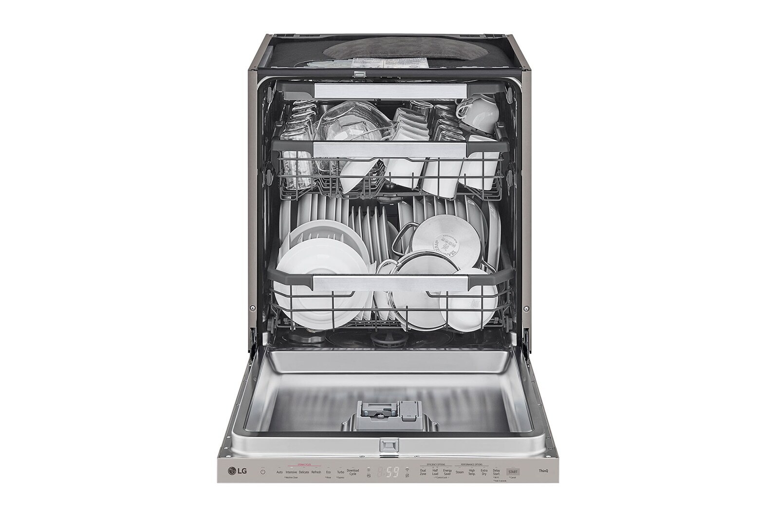 LG ThinQ™ rakenduse abil saate jälgida pesuprogrammi edenemist ja vajadusel alla laadida täiendavaid pesuprogramme. Nõudepesumasina Auto Open Dry funktsioon avab ukse automaatselt pärast pesutsükli lõppu, võimaldades nõudel tõhusalt kuivada ilma täiendava energiatarbimiseta. LED-ekraan näitab järelejäänud aega ja vaikne helitase muudab kasutamise meeldivaks.
