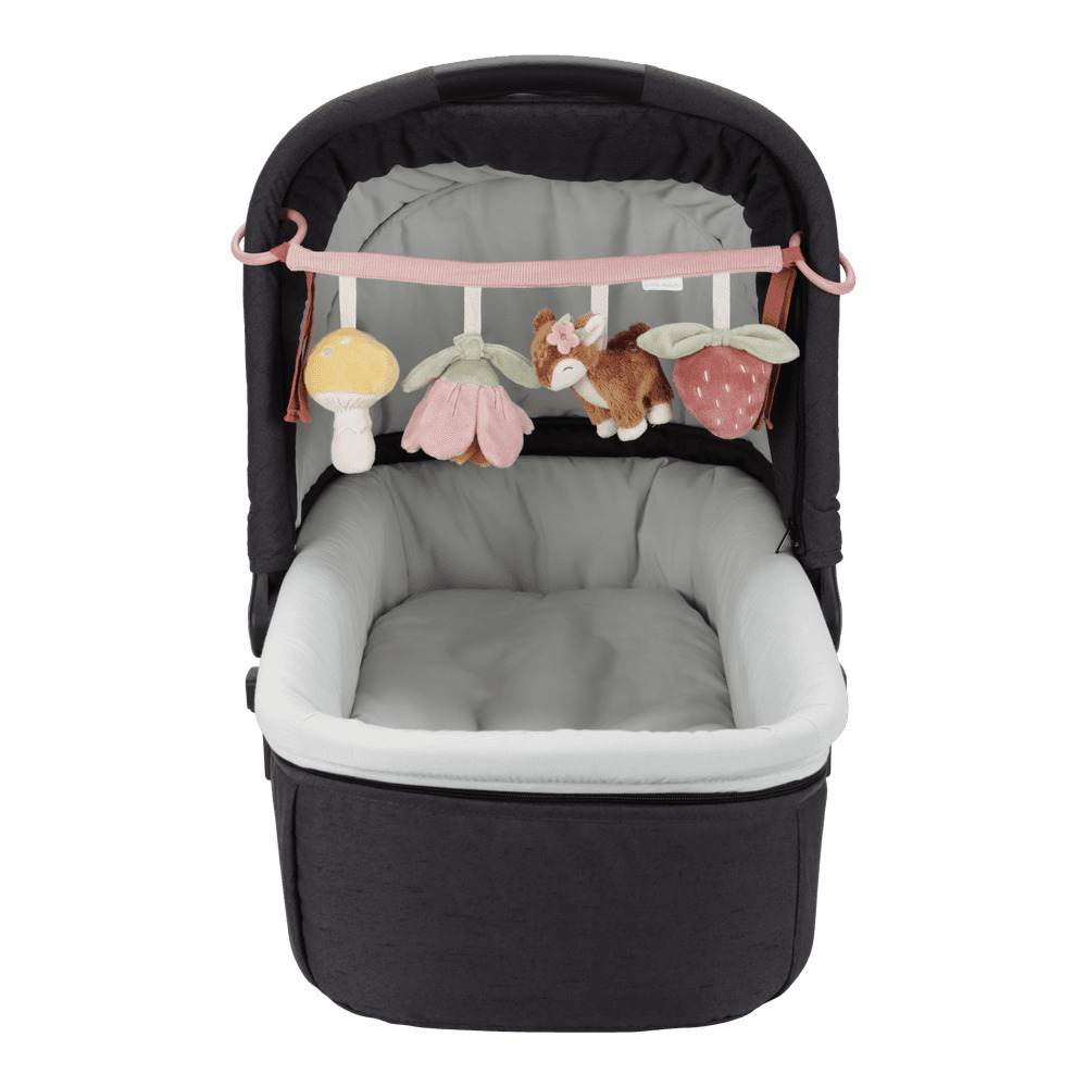 Tutvu nelja armsa väikese mänguasjaga Haldjaaiast. Armas hirv, maasikas, seen ja ilus lill lõbustavad sind jalutuskäigu ajal. Paku oma lapsele sensoorne kogemus selle värvilise käru kõristiga, mis soodustab käe-silma koordinatsiooni arengut liikvel olles. Käru kõristi on lihtne turvatoolilt käru külge kinnitada. Toode on valmistatud taaskasutatud GRS-materjalist.