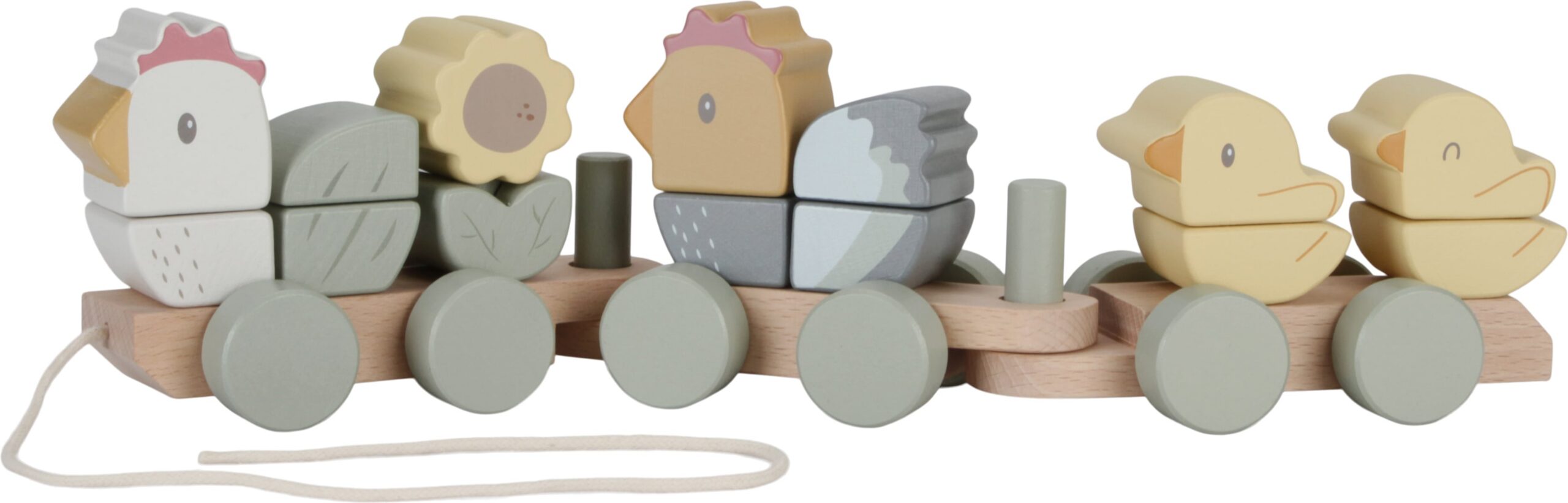 Little Dutchi puidust rong koosneb 17 osast ja on umbes 40 cm pikk. Erineva kuju ja värvi klotsidega saate iga kord mängides erinevaid kanu ja tibusid laduda.