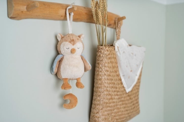 See sõbralik öökull viib teid imede ja kujutlusvõimega täidetud unistustemaale. Täiustage oma õhturutiini selle mängulise muusikakarbi lummavate meloodiatega. Tõmmake väike kuu alla, rahustav unelaul hakkab mängima ja teie pisike jääb magama. Ilus kingitus ja armas täiendus lastetoa sisustusele. Toode on valmistatud taaskasutatud GRS materjalist.