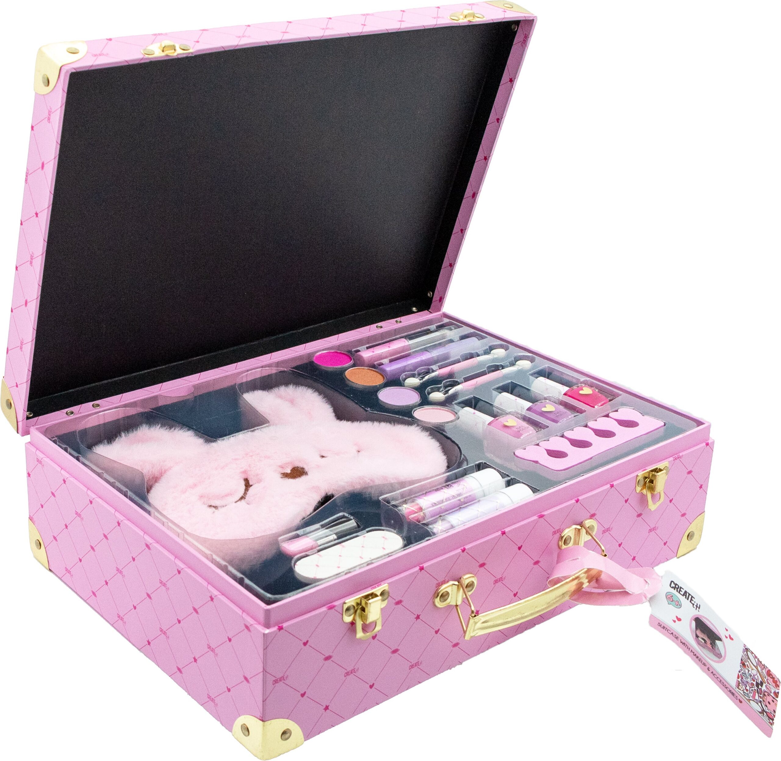Portfell sisaldab lauvärvi, huulepulka ja läiget, pintsleid, küünelakki, küüneviili, pehmet unemaski jne. Üle 15 osa.
