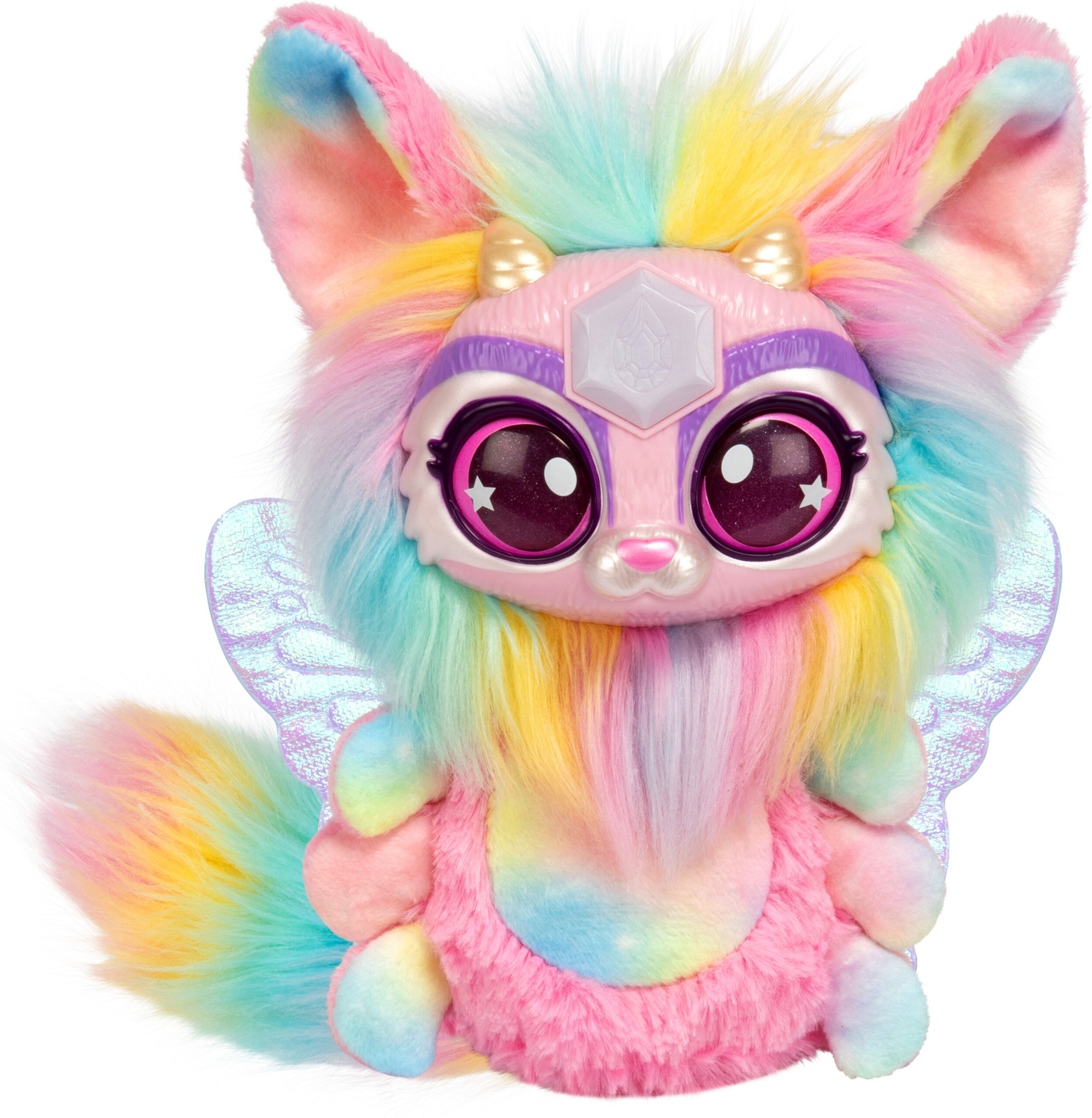 Kui su laps kristalli avab, leiab ta maagilise Mixie pehme mänguasja ja sobiva värvi muutva võlusõrmuse! Kas see on pimedas helendav maagiline rõngas või UV-värvi muutev maagiline rõngas? Kui loote Mixie päikeseplüüsmänguasja, muudab võlusõrmus UV-valguse käes värvi. Kui loote Mixie kuuplüüsmänguasja, helendab võlusõrmus pimedas! Vajuta kristalli Mixie peas ja vaata, kuidas Mixie silmadesse ilmub kaunis sädelev efekt, või võid Mixie’t edasi-tagasi raputada, et näha sädelevat efekti tema silmades!