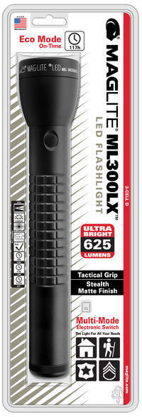 Pika elueaga ja programmeeritav Maglite LED D taskulamp. Erakordselt pikk põlemisaeg hoiab tegevuskulud minimaalsed. Kindla haarde tagav korpus on Stealth mattkattega, et minimeerida tuvastamist, ja III tüüpi kõvaanodeeritud, et parandada korrosioonikindlust. Töötab kolme D-patareiga. Kvaliteetne ja ühtlane valgusvihk, mis muudab pikaajalise pideva kasutamise meeldivaks. Uusim suure jõudlusega 3. põlvkonna LED-tehnoloogia.