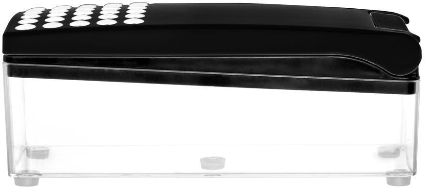 Köögiviljalõikuriga saate kiiresti ja lihtsalt hakkida, viilutada, riivida ja hakkida. Seitse vahetatavat tera, sõrmekaitse ja kaabits võimaldavad lõbusat ja kiiret toiduvalmistamist.