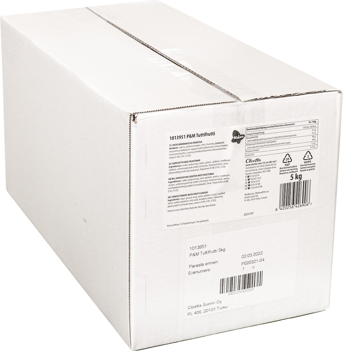 Malaco Tuttifrutti – lahtised kommid, 5 kg