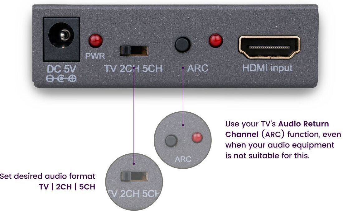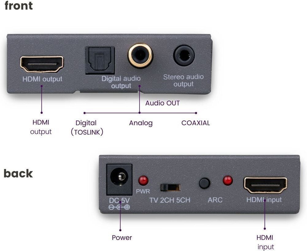 Selle HDMI-helijaoturi abil saate teleri integreeritud digitaalse tuuneri, nutiteleri rakendused (nt Netflix, YouTube) ja välise HDMI-allika heli oma kodukinosüsteemiga ühendada analoog- või digitaalühenduse abil.