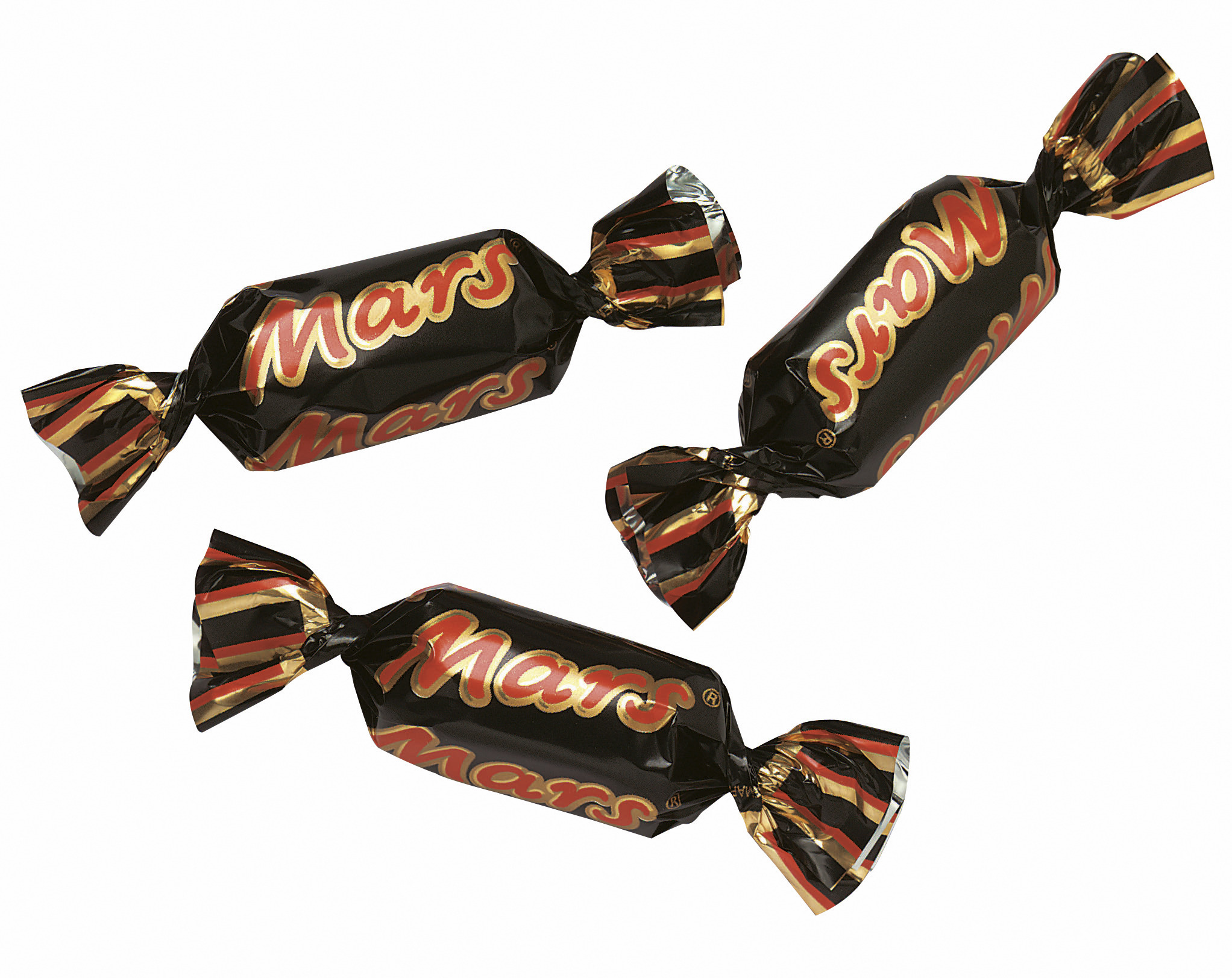 Mars-suklaakonvehdit reilussa tukkupakkauksessa.