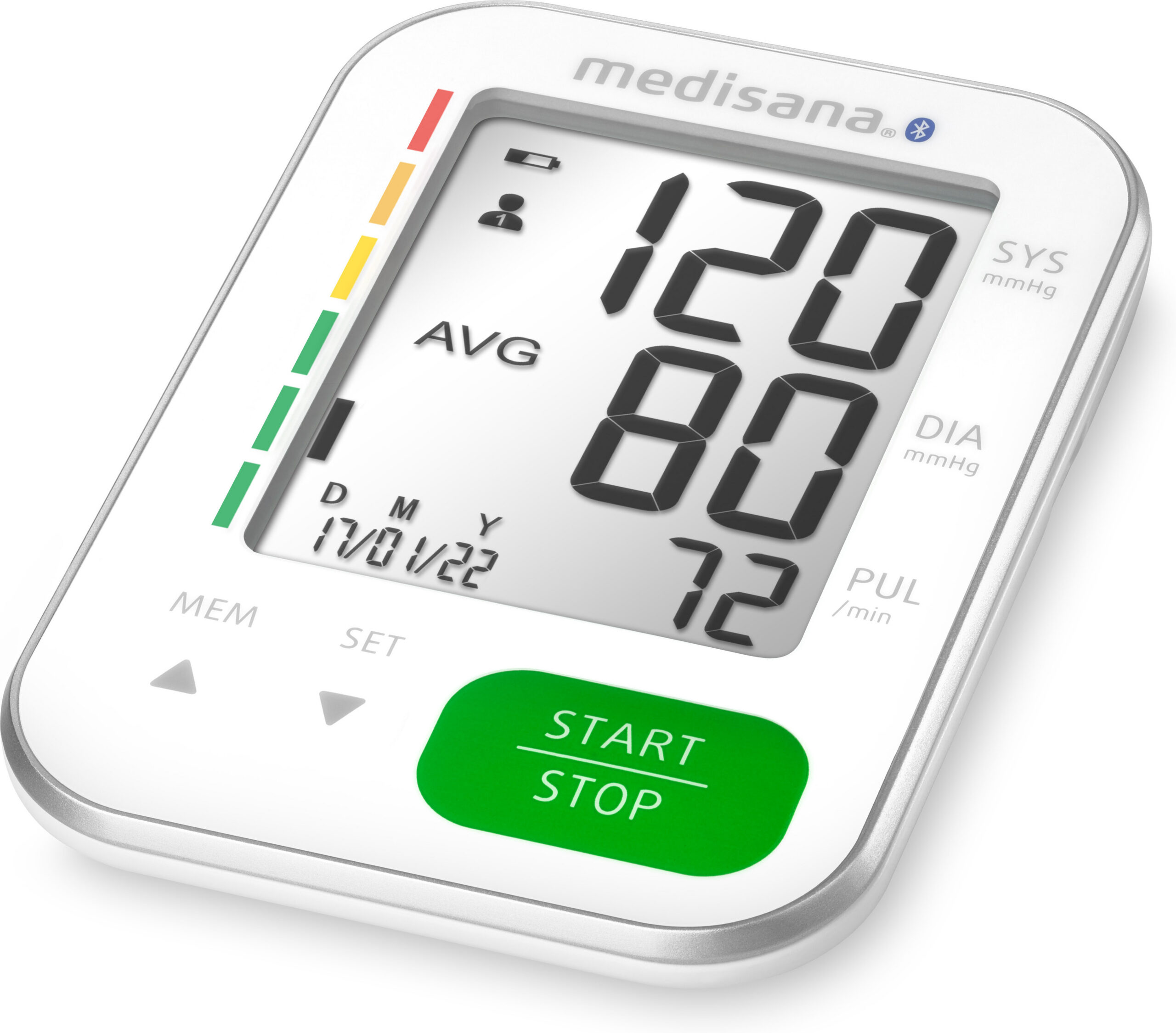 Lihtsalt kasutatav ja kompaktne vererõhumõõtja suure ekraaniga. Seade mõõdab usaldusväärselt vererõhku õlavarrel. Mõõtmistulemusi saab salvestada kahelt erinevalt kasutajalt 120 mälukohale ja Bluetoothi kaudu Medisana Vitadock rakendusse.