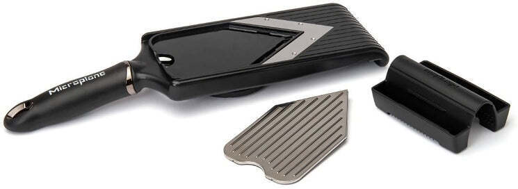 V-teraga mandoliinil on vastupidavad ja teravad terad reguleeritavate funktsioonidega. Manuaalse mandoliiniga saad puu- ja köögivilju viilutada erineva paksusega rõngasteks hetkega.