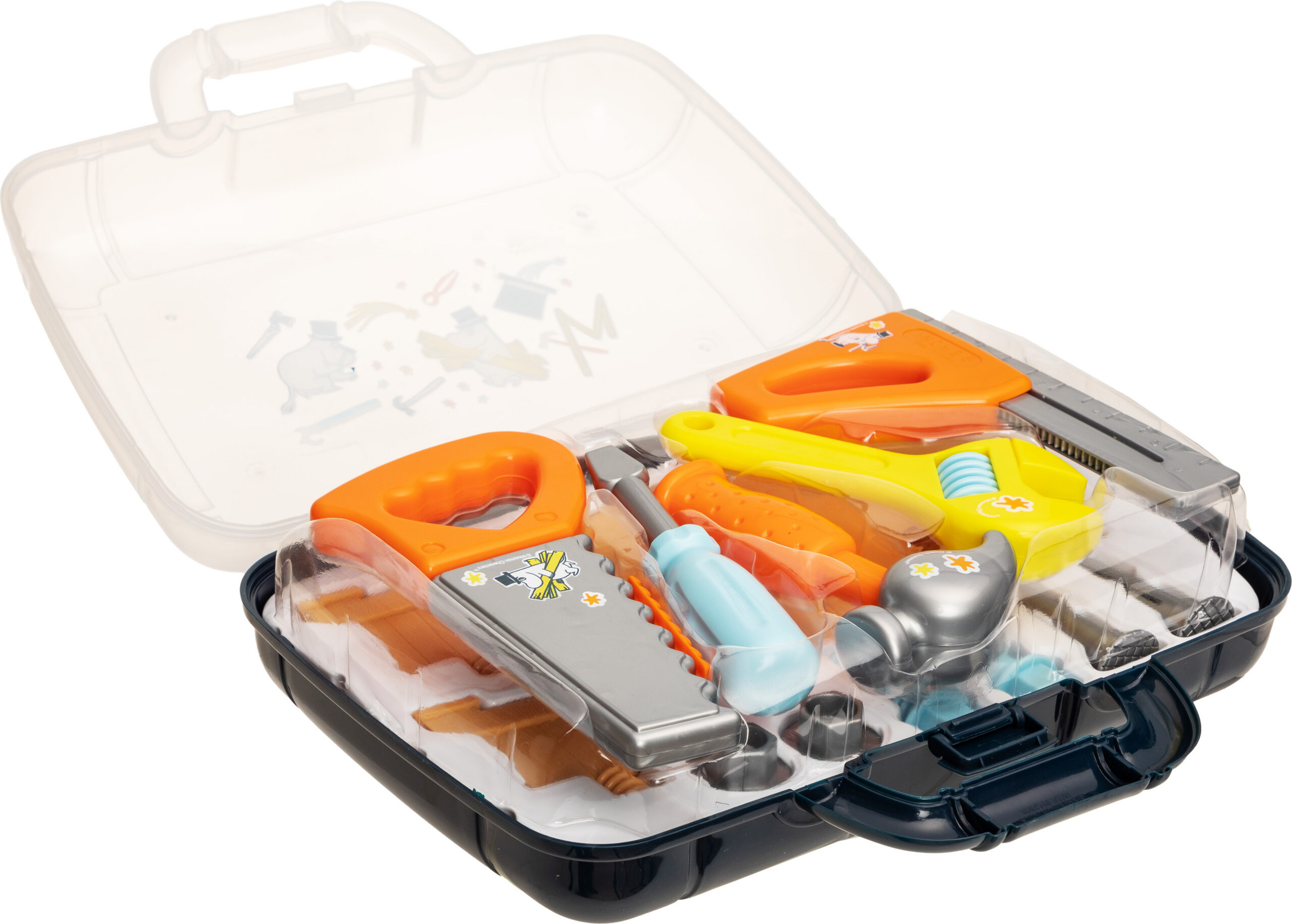 Käepärane plastkarp sisaldab kõiki tööriistu, mida väike nokitseja vajab, ühes pakendis.