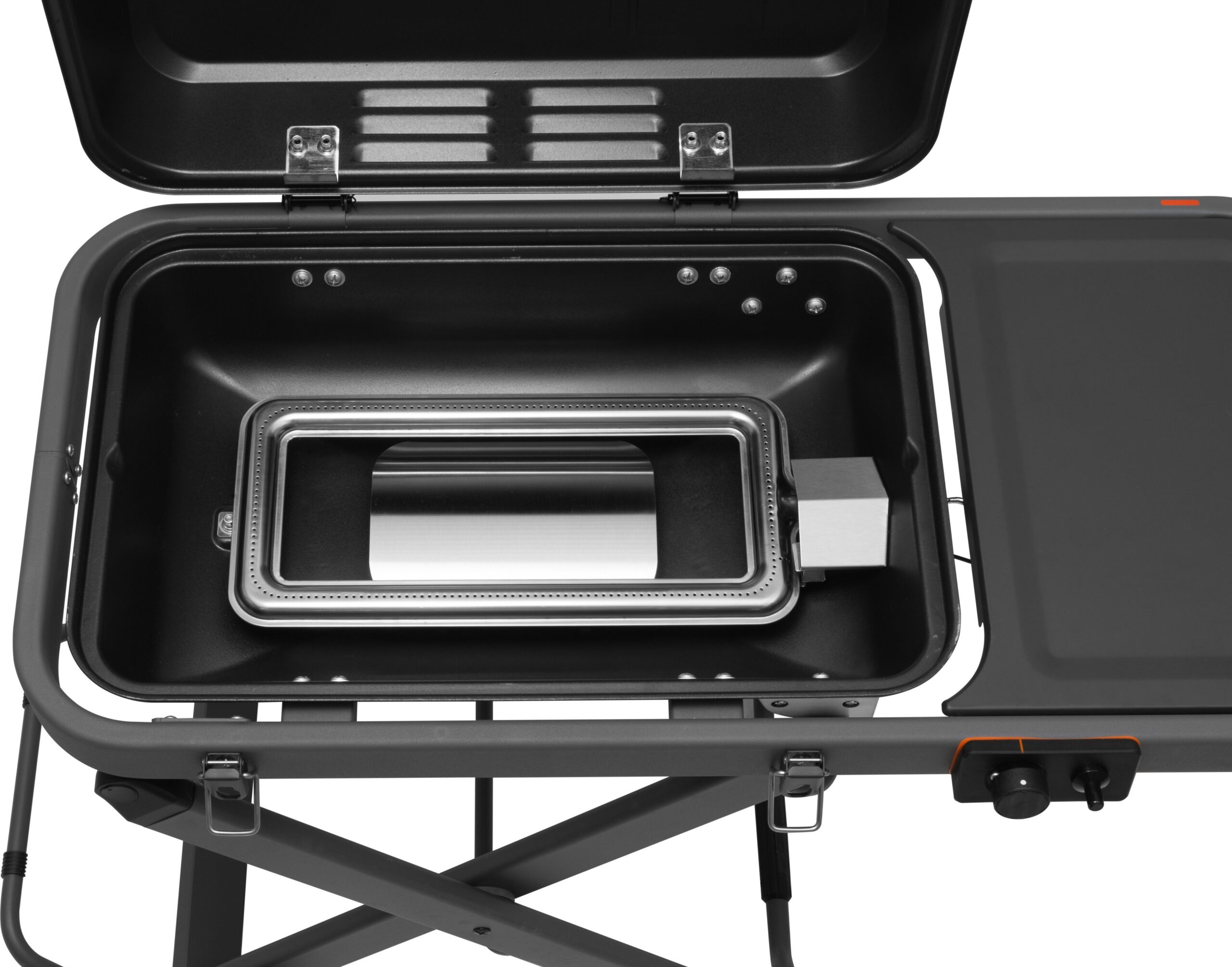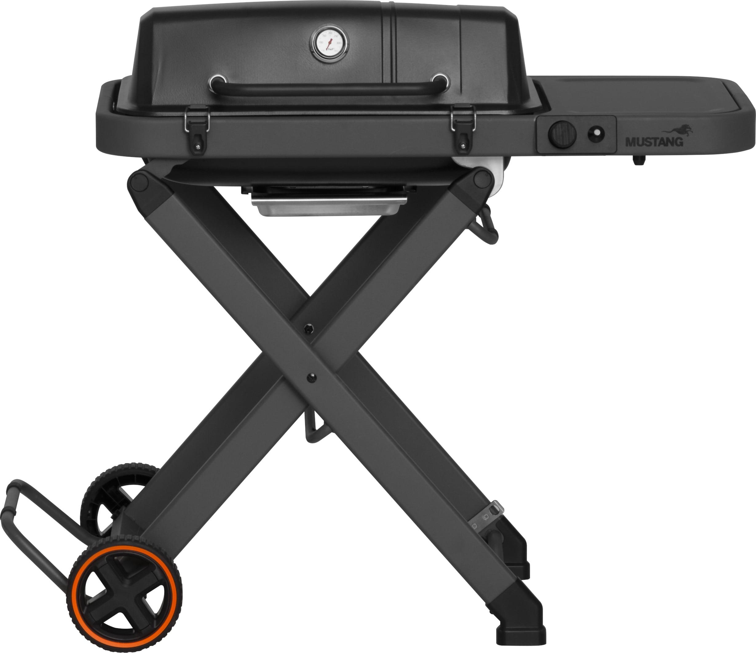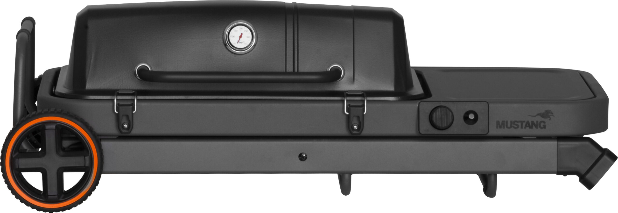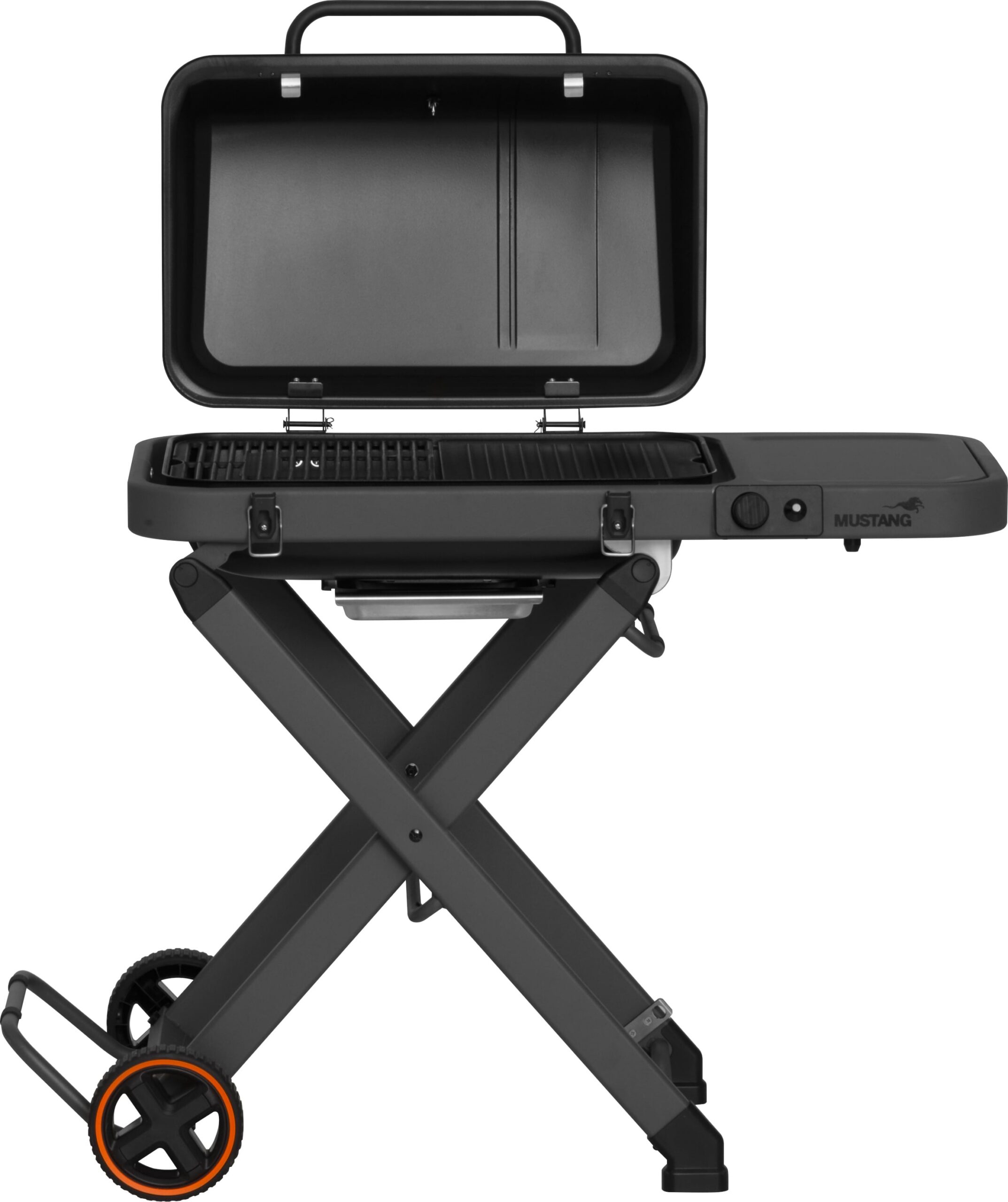Mustang Foldissa on suorakaiteen muotoinen poltin, joka jakaa lämmön tasaisesti koko grillausalalle. Valurautaritilän ja -parilan ansiosta saat täydellisen paistopinnan niin pihveille, kasviksille kuin muillekin herkuille. Kaksi isoa pyörää ja tukeva, kokoontaitettava vaunu tekevät grillin siirtämisestä vaivatonta.