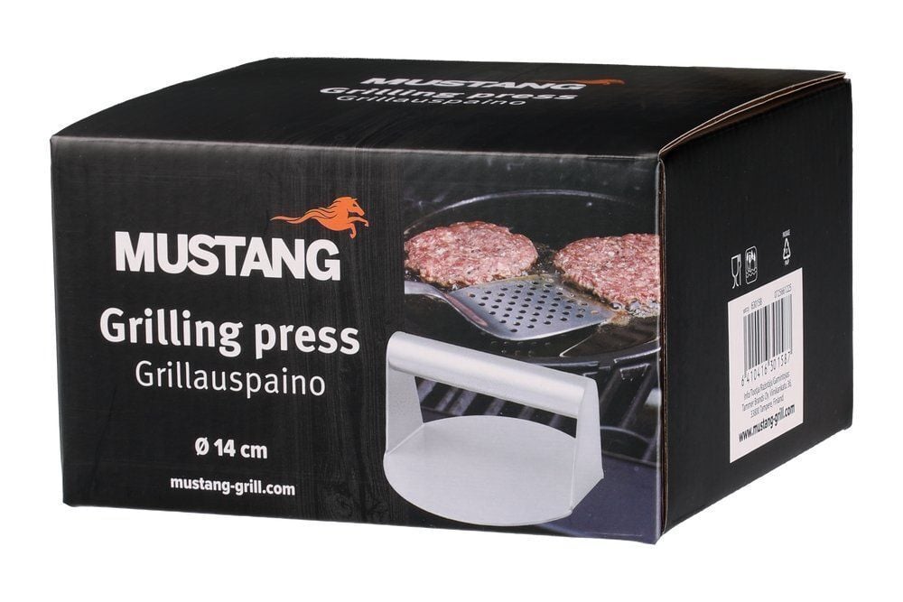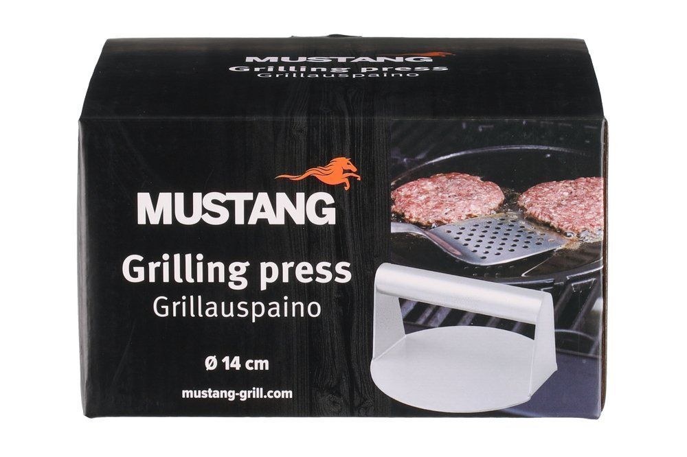 Mustangin ruostumattomasta teräksestä valmistettu grillauspaino auttaa pitämään grillattavat tuotteet litteinä ja estää niiden kipristymisen kuumuudessa. Se on erinomainen apuväline esimerkiksi pekonille, pihveille ja erityisesti smash‑burgereille.