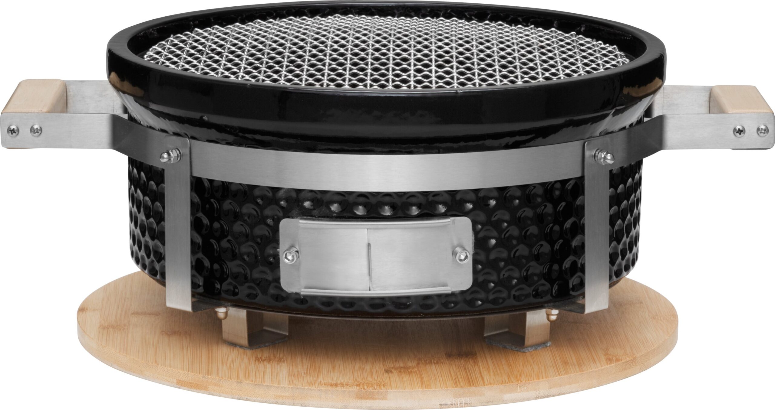 Mustang Hibachi on valmistettu kestävistä materiaaleista. Verkkomainen grillausritilä estää ruoan tarttumista ja valurautainen hiiliritilä takaa tasaisen lämmön jakautumisen. Kantokahvojen ansiosta grillin siirtäminen on vaivatonta ja bambualusta suojaa pöytää kuumuudelta.