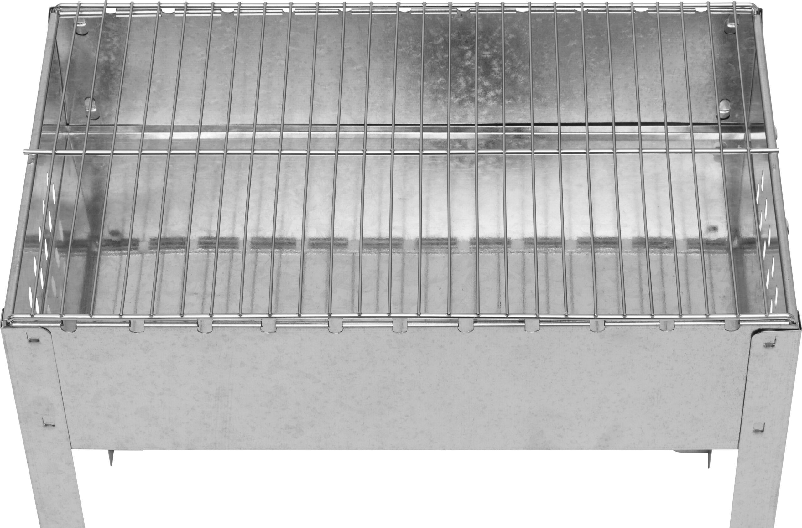 50 x 30 cm ristkülikukujuline roostevabast terasest söegrill. Komplektis 6 roostevabast terasest varrast.