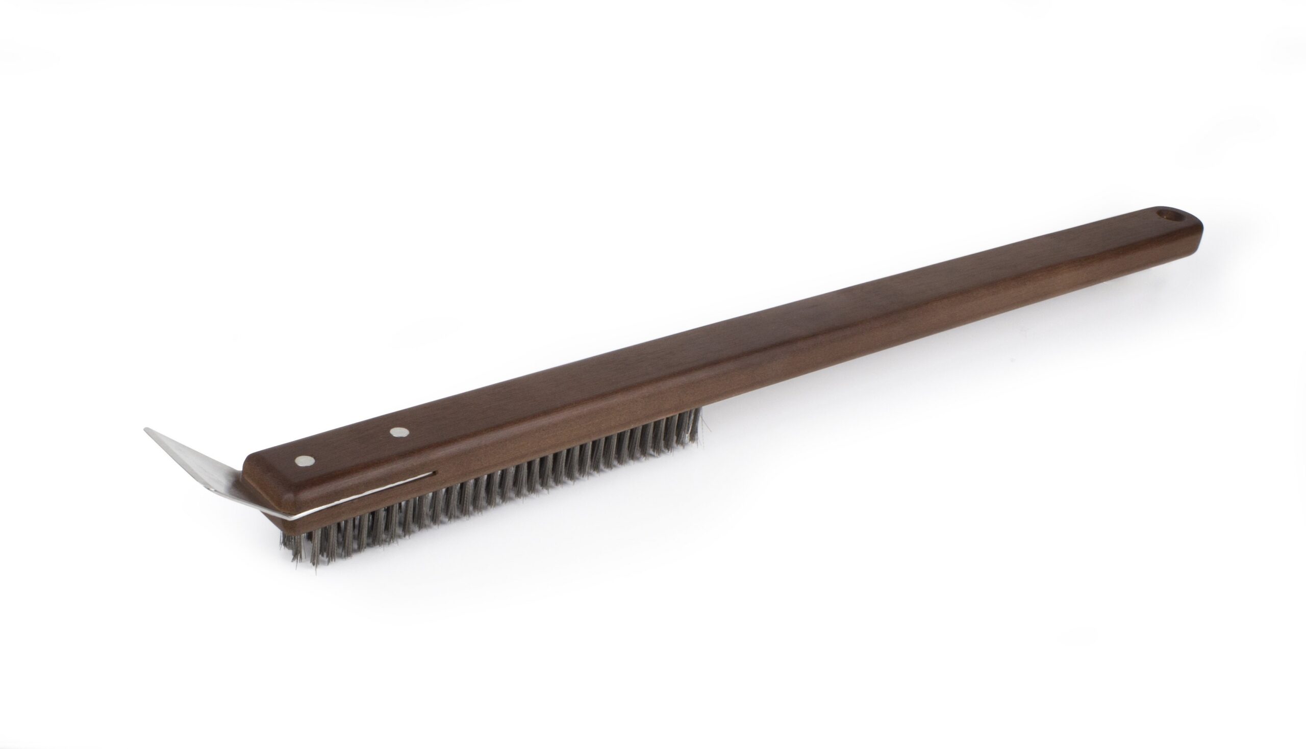 Muurikan kätevä pizzauunin puhdistusharja on suunniteltu tekemään pizzauunin huoltamisesta nopeaa, tehokasta ja turvallista. Monipuolinen 2-in-1-työkalu yhdistää laadukkaan harjan, joka poistaa helposti ylimääräisen jauhon, sekä tukevan kaapimen, jolla irrotat kiveen palaneet jäämät vaivattomasti. Pitkän varren ansiosta yllät myös uunin perälle ilman, että sinun tarvitsee kurottaa kuumaan tilaan.