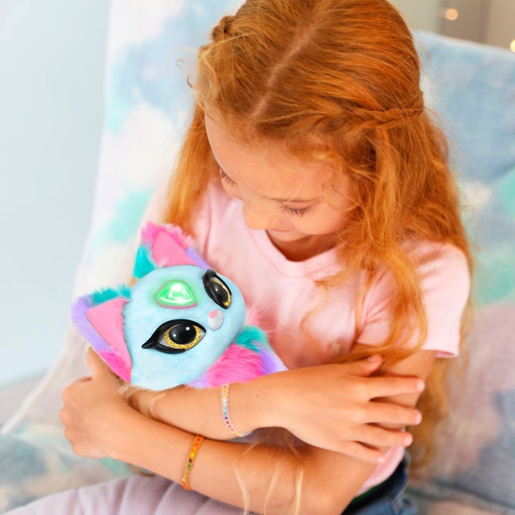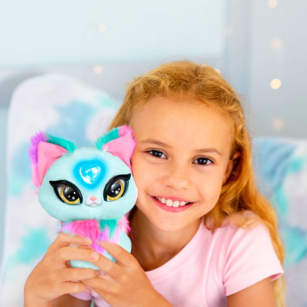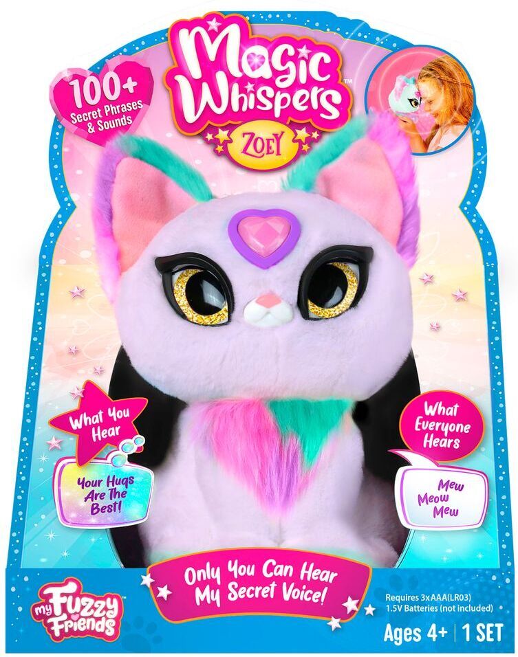 Vain sinä voit kuulla, mitä interaktiivinen Magic Whispers Kitty kuiskaa! Paina hohtava sydän otsaasi vasten, niin kuulet mm. tärkeitä neuvoja ja miltä siitä tuntuu. Ihana ja suloinen halikaveri, jolla on yli 100 lausetta ja äänitoimintoa!