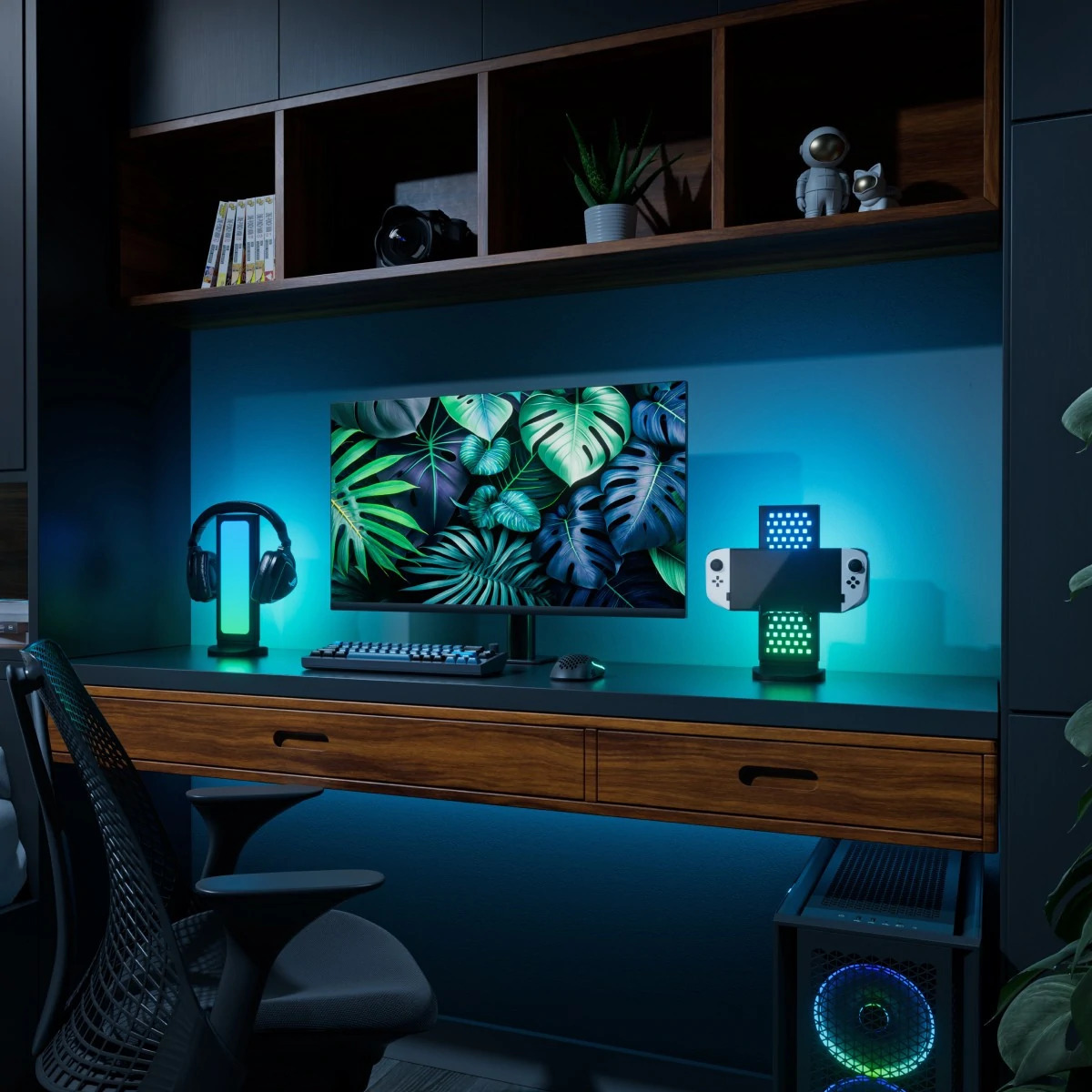 Ühendage alus otse arvuti USB-C-porti ja sünkroonige Nanoleafi töölauarakenduse abil. Hankige reaalajas ekraanipeegeldus, muusika visualiseerimine ning täielikult kohandatavad värvid ja liikumised, mis reageerivad mängude ja rakenduste sündmustele.