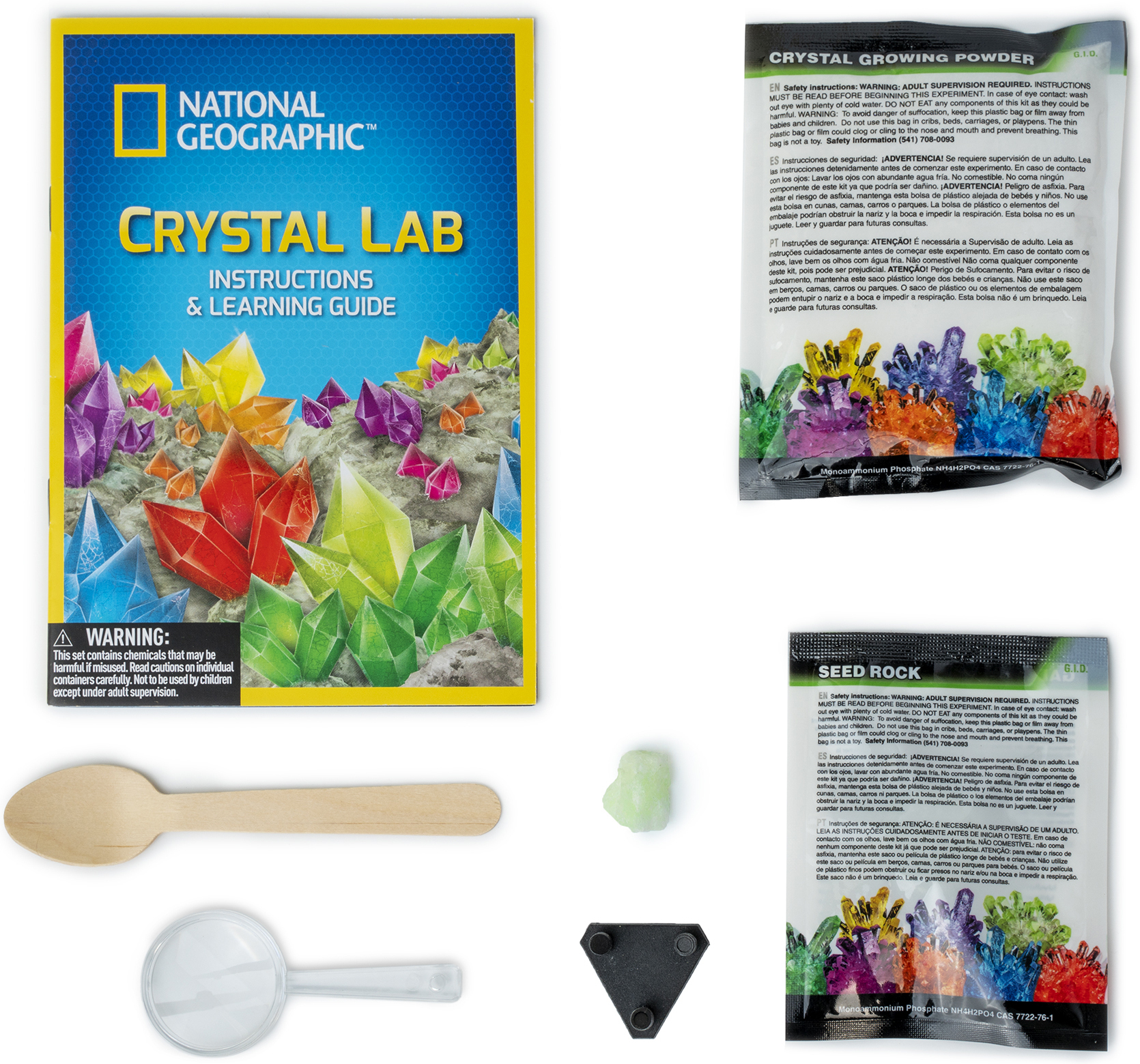 National Geographicu pimedas helendav kristallilabor on põnev ja lõbus teaduskatse. Mängukomplektiga saate kristalli paar päeva kasvatada ja näha imet, kui see pimedas helendab!