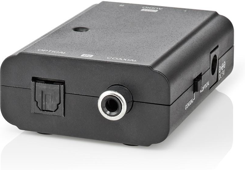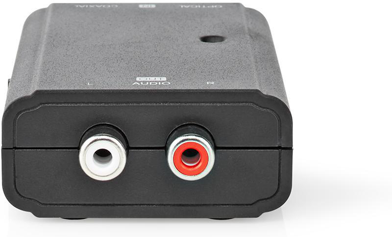 Teisendab digitaalse optilise või koaksiaalse S/PDIF-signaali stereo RCA-ks. Sobib suurepäraselt näiteks võimendi ühendamiseks teleri TOSLINK-pistikuga.