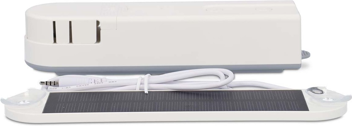 - Sisseehitatud liitiumioonaku, mida saab laadida toiteadapteri või kaasasoleva päikesepaneeliga