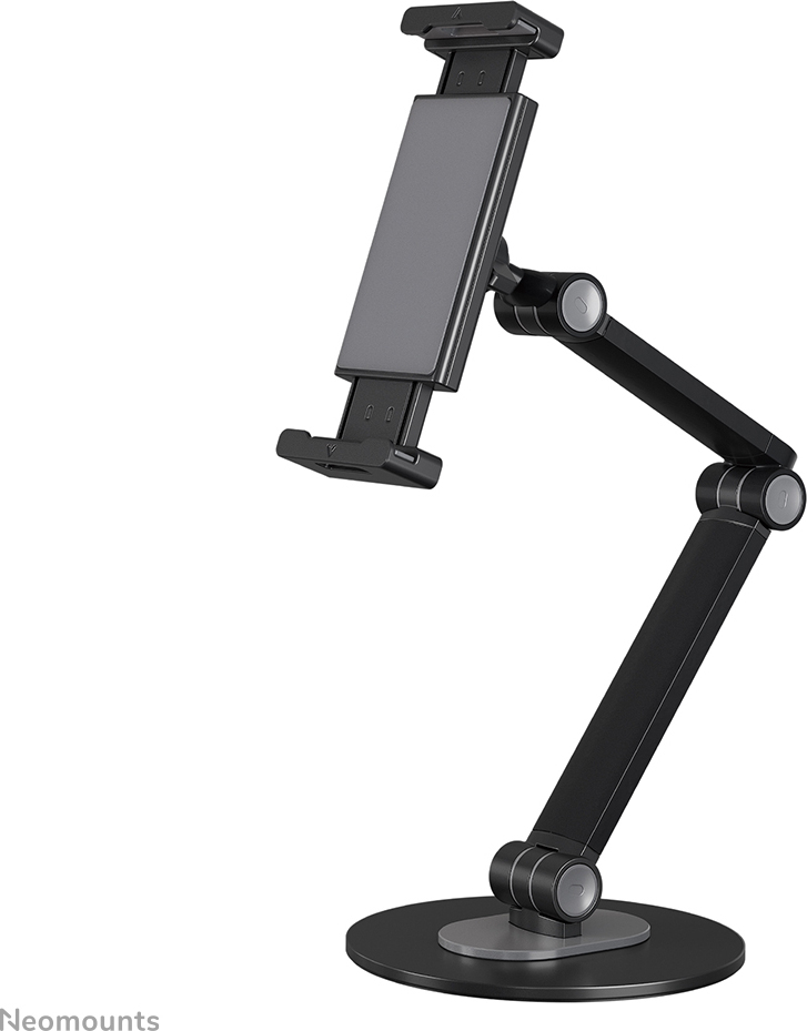 Neomounts by Newstar universaalne tahvelarvuti alus 4,7″-12,9″ tahvelarvutitele ja telefonidele. Alus sobib ideaalselt käed-vabad videokõnedeks, filmide vaatamiseks või mängude mängimiseks. Kuulliigendid võimaldavad alusel pöörata 360°, nii et saate vahetada vertikaalse ja horisontaalse asendi vahel. Lisaks võimaldavad nutikad kallutus- (270°) ja pöörlemisvõimalused (104°) aluse ideaalse vaatenurga alla paigutada. Pehmed kummist padjad kaitsevad teie seadet kriimustuste eest ja vastupidav libisemiskindel alus silikoonpatjadega tagab seadme stabiilse asendi.